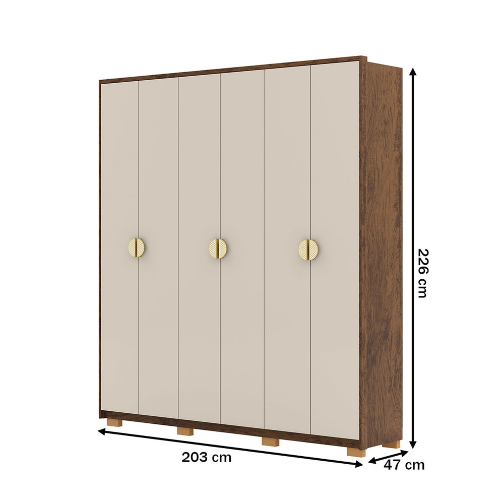 O(a) Guarda-Roupa Igaratá 6 Portas 4 Gavetas Imbuia/Fendi - Pnr Móveis é produzido em 100% MDF na escala de brilho Impressão UV, e possui um grau de dificuldade de montagem: Médio.