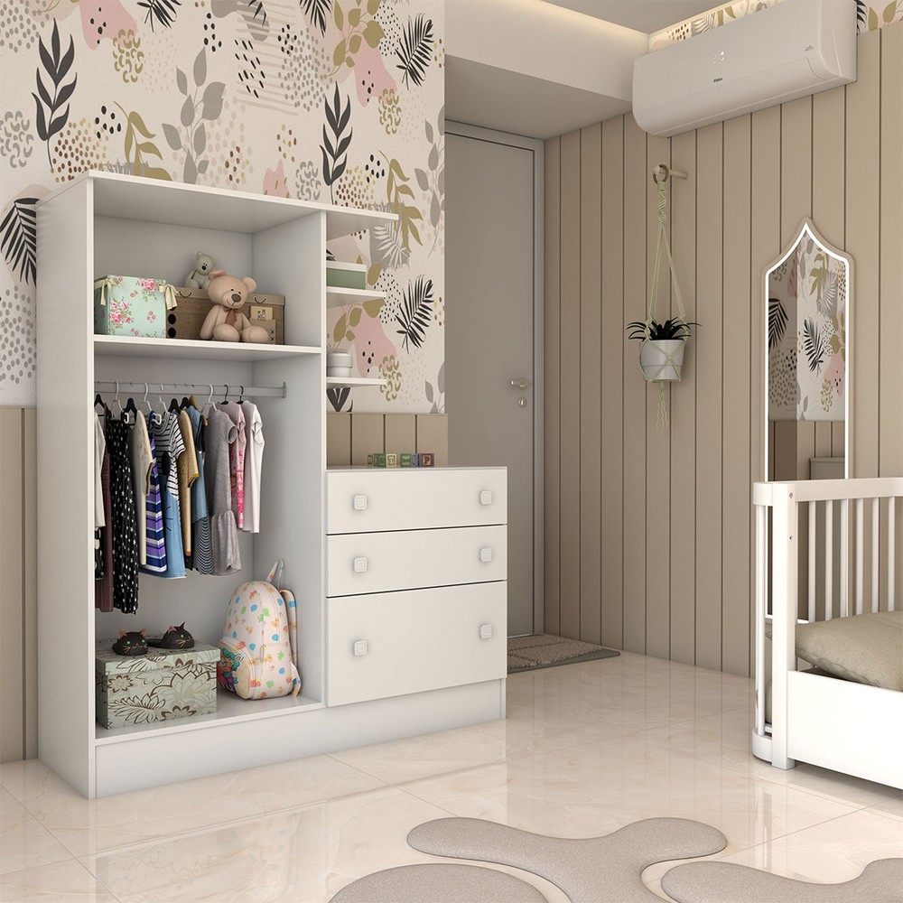 O(a) Guarda-Roupa Infantil com Cômoda Colorê 2 Portas 3 Gavetas Branco - Panorama Móveis é produzido em MDP na escala de brilho Semi-Brilho, e possui um grau de dificuldade de montagem: Médio.