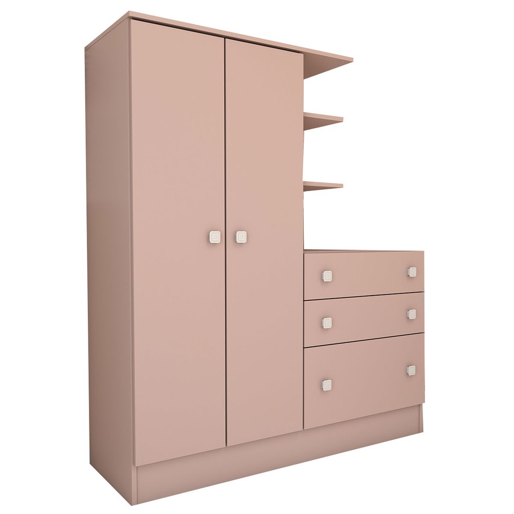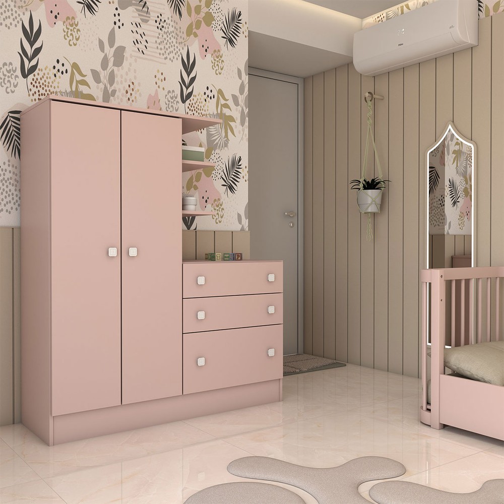 Guarda-Roupa Infantil com Cômoda Colorê 2 Portas 3 Gavetas Rosa - Panorama Móveis