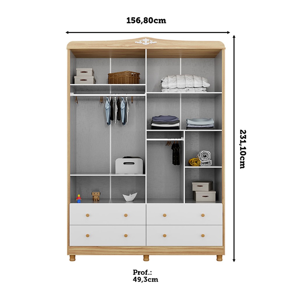 Guarda-Roupa Infantil Elô 4 Portas 4 Gavetas 100% Mdf 4460 Branco Brilho/Amêndoa - Móveis Peroba