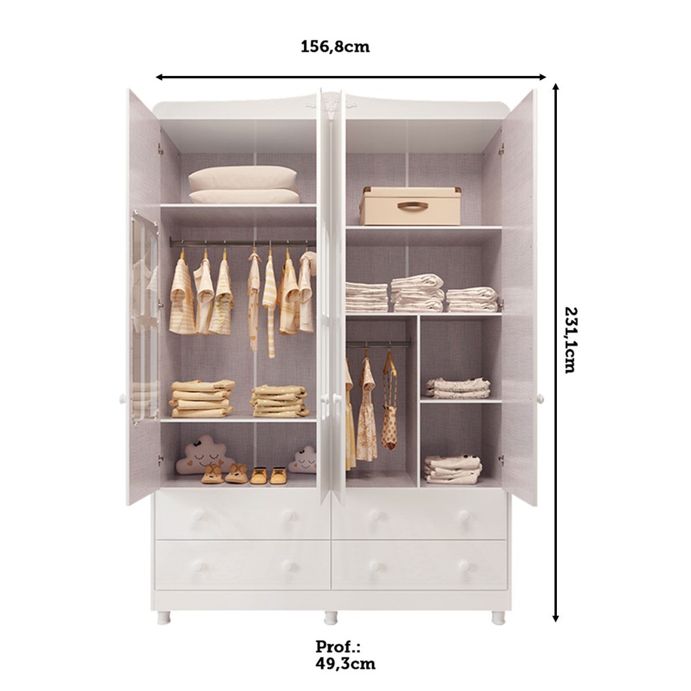 Guarda-Roupa Infantil Elô 4 Portas 4 Gavetas 100% Mdf 4460 Branco Brilho - Móveis Peroba