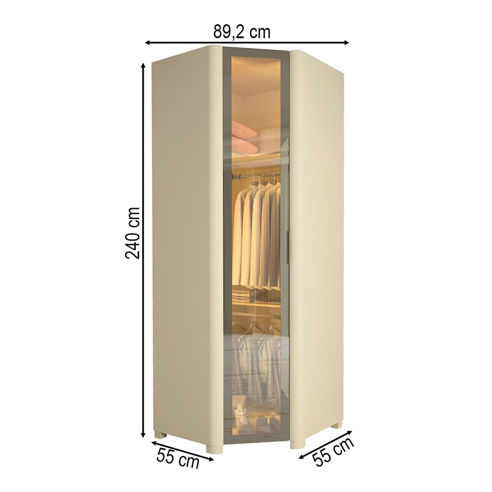 Guarda-Roupa Modulado Innova 1 Porta com Vidro e Led 100% Mdf Off White - Gelius