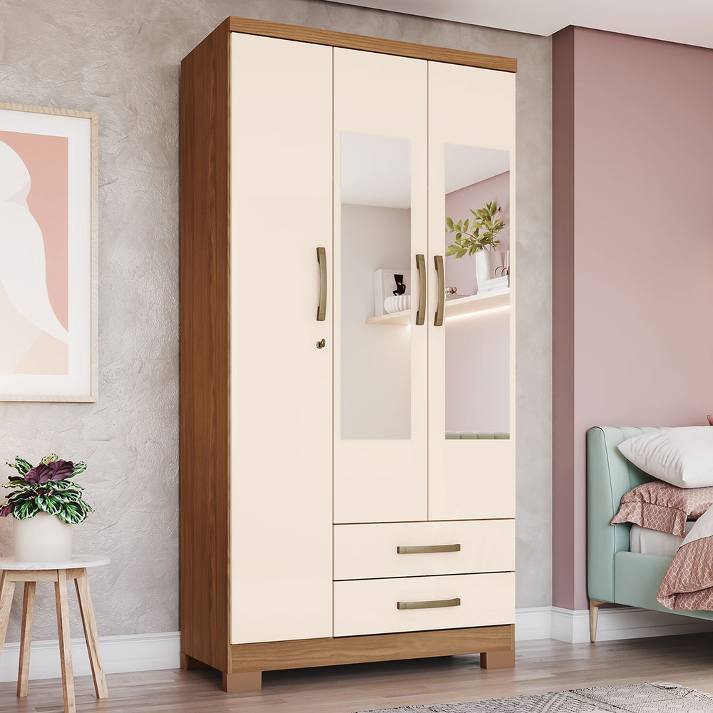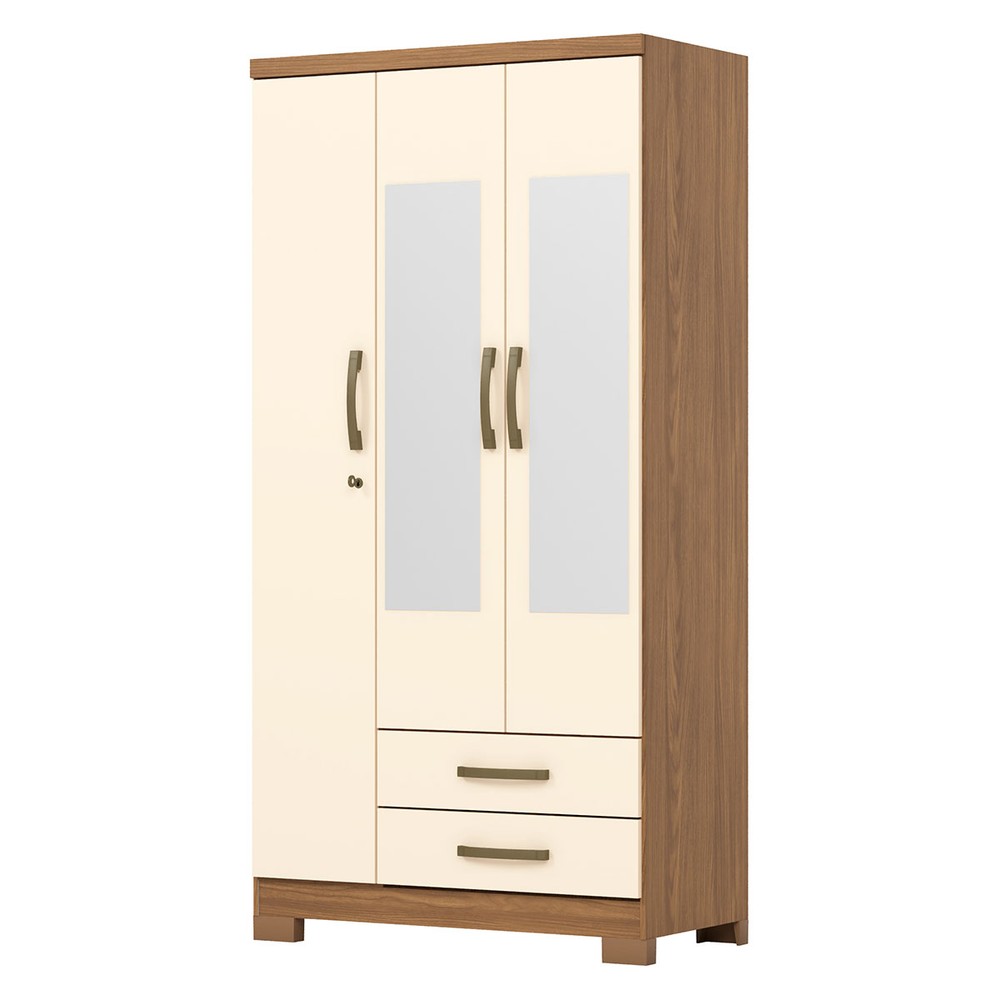 Guarda-Roupa Solteiro Açaí 3 Portas 2 Gavetas com Espelho Nature/ Off White - Henn