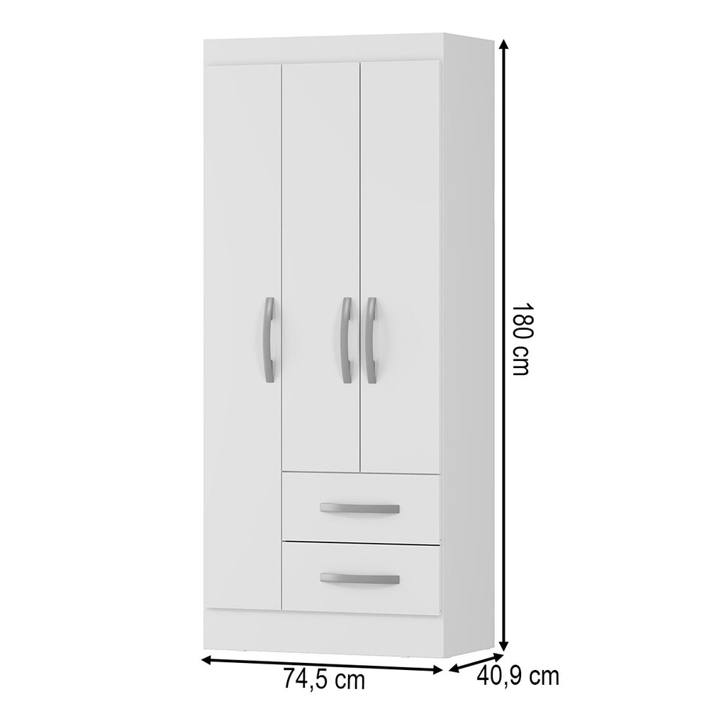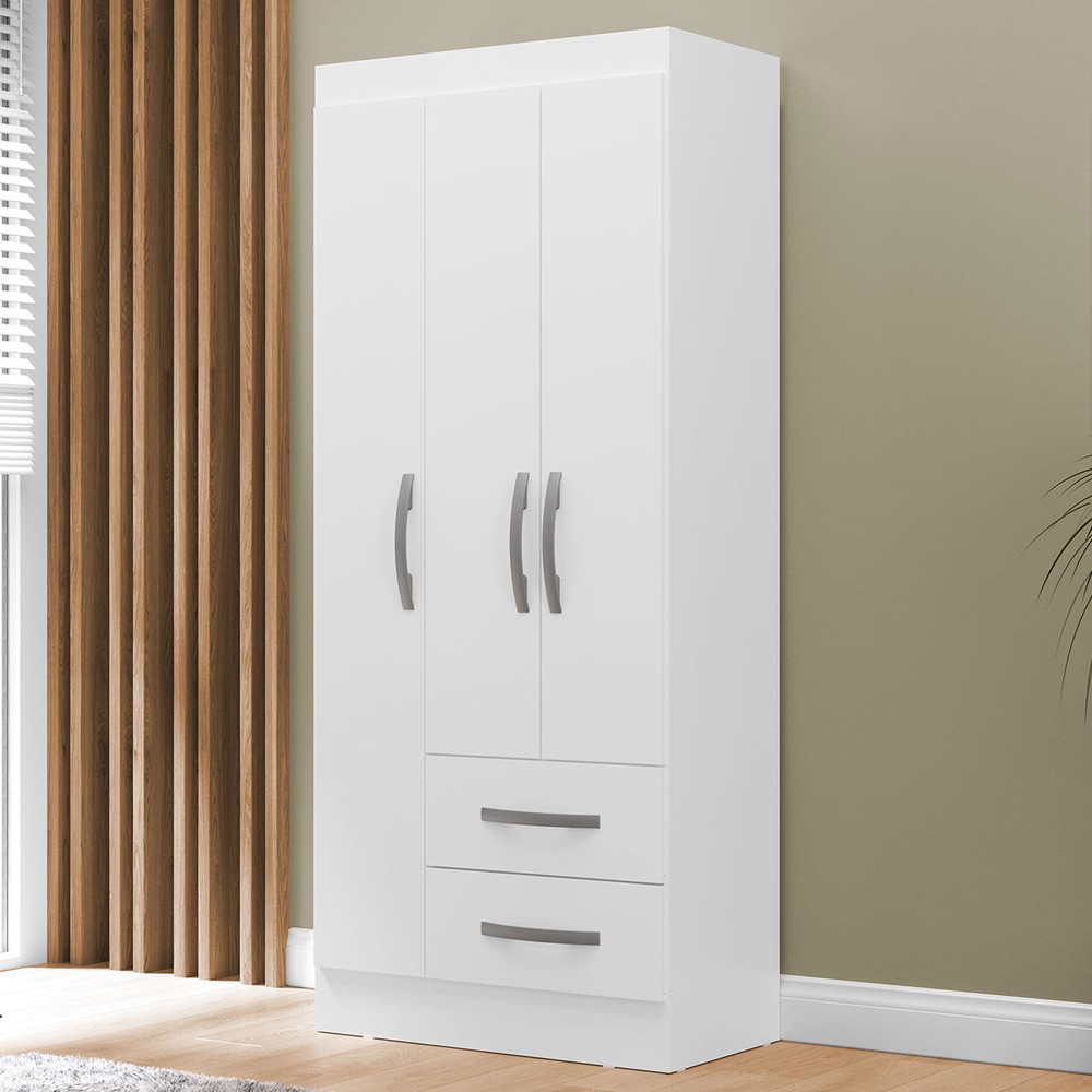 Guarda-Roupa Solteiro Adolfo 3 Portas 2 Gavetas Branco Neve - Mx Móveis