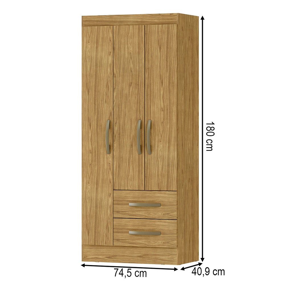 Guarda-Roupa Solteiro Adolfo 3 Portas 2 Gavetas Marrocos - Mx Móveis