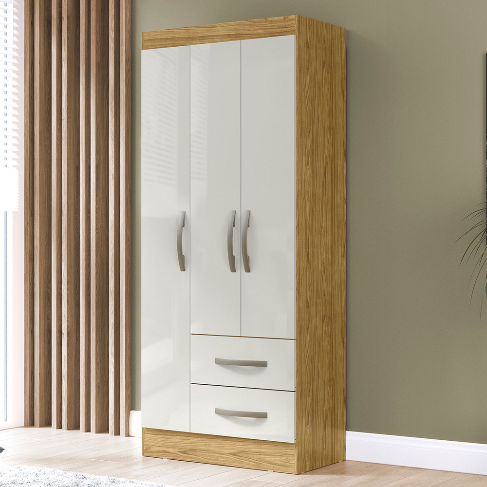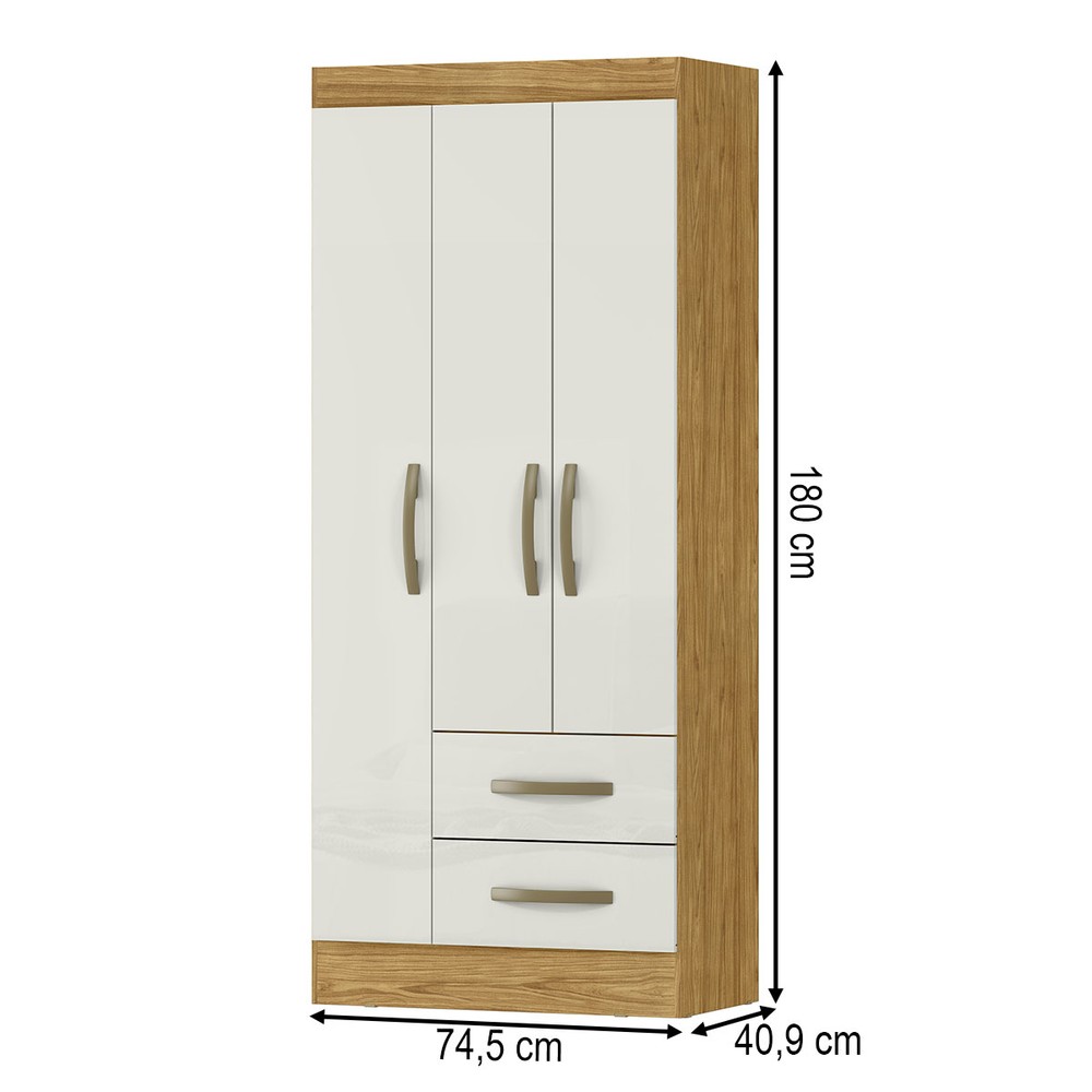Guarda-Roupa Solteiro Adolfo 3 Portas 2 Gavetas Marrocos/Off White - Mx Móveis