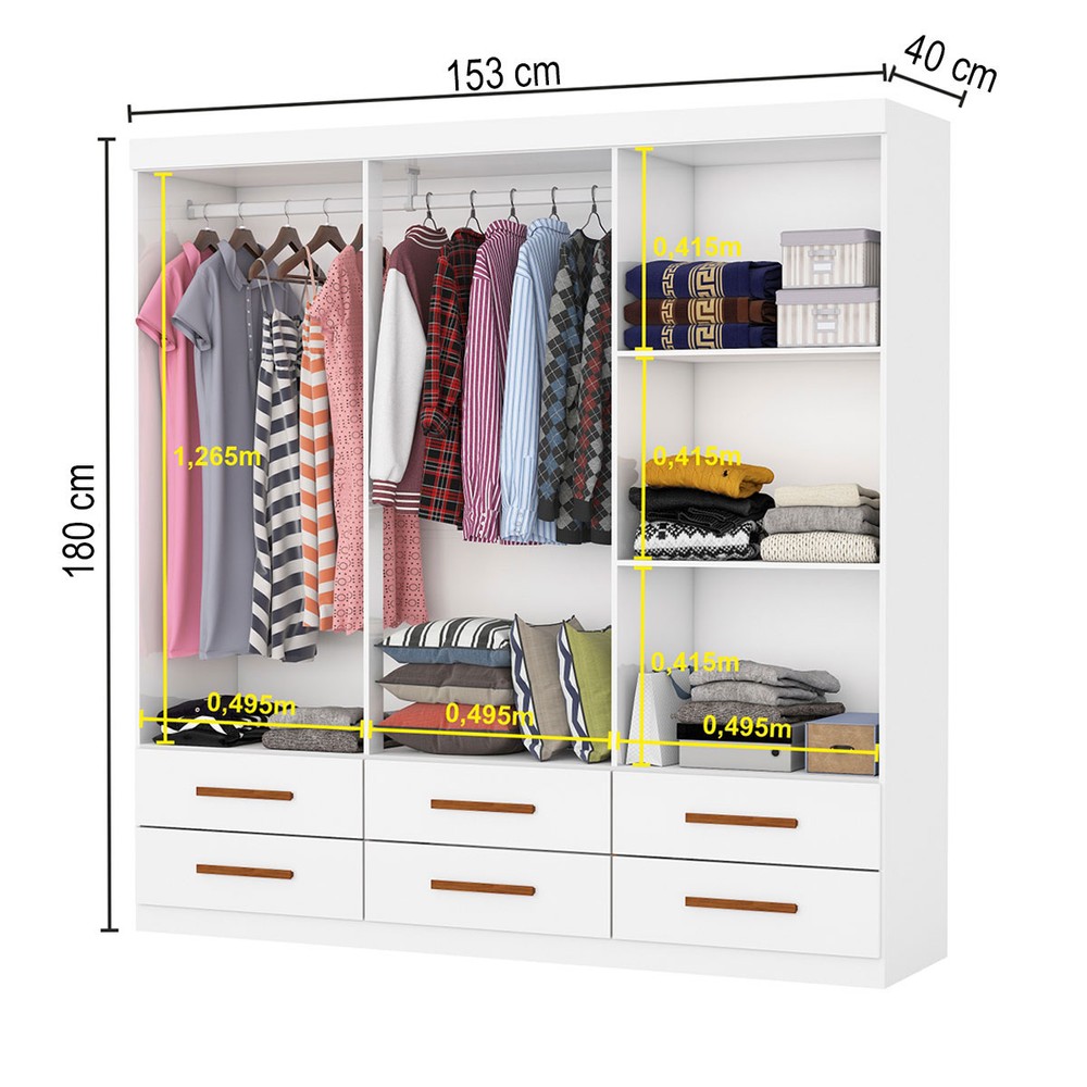 O(a) Guarda-Roupa Solteiro Aria 6 Portas 6 Gavetas Branco - Pnr Móveis é produzido em MDP na escala de brilho Fosco e Semi-Brilho, e possui um grau de dificuldade de montagem: Médio.