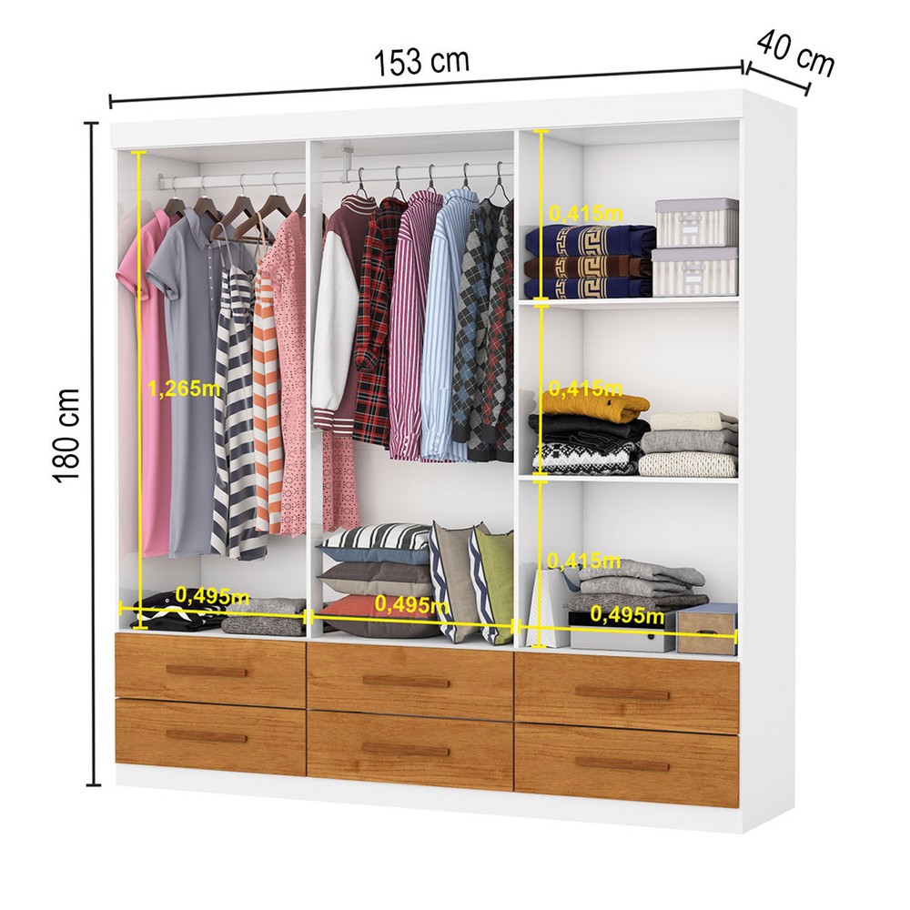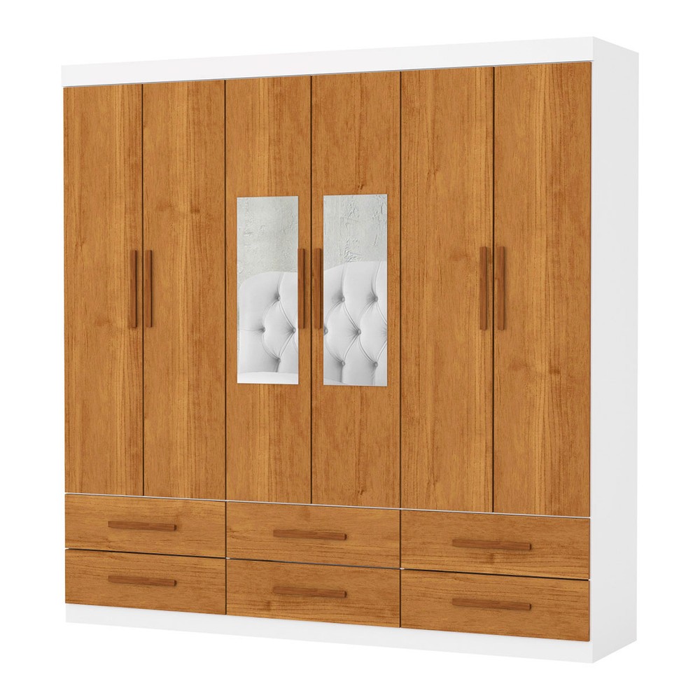 O(a) Guarda-Roupa Solteiro Aria 6 Portas 6 Gavetas com Espelho Branco/Cinamomo - Pnr Móveis é produzido em MDP na escala de brilho Fosco e Semi-Brilho, e possui um grau de dificuldade de montagem: Médio.