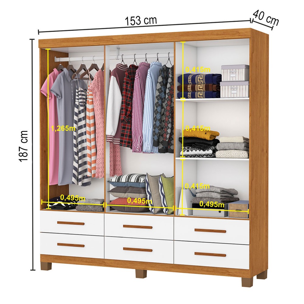 O(a) Guarda-Roupa Solteiro Denver 6 Portas 6 Gavetas 22120 Cinamomo/Branco - Carioca Móveis é produzido em MDP na escala de brilho Fosco e Semi-Brilho, e possui um grau de dificuldade de montagem: Médio.