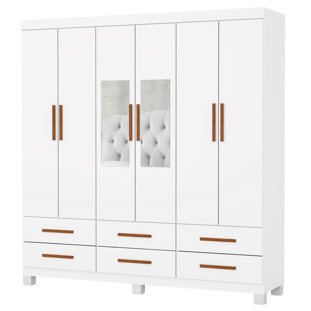 O(a) Guarda-Roupa Solteiro Aria 6 Portas 6 Gavetas com Pés e Espelho Branco - Pnr Móveis é produzido em MDP na escala de brilho Fosco e Semi-Brilho, e possui um grau de dificuldade de montagem: Médio.