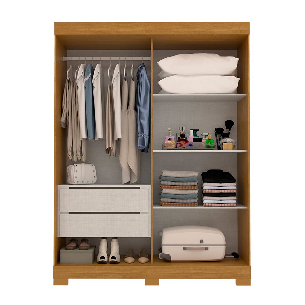 O(a) Guarda-Roupa Solteiro Ayla 2 Portas 2 Gavetas 100% Mdf Flex Cinamomo/Off White - Acp Móveis é produzido em 100% MDF na escala de brilho Brilhante e Semi-Brilho, e possui um grau de dificuldade de montagem: Difícil.