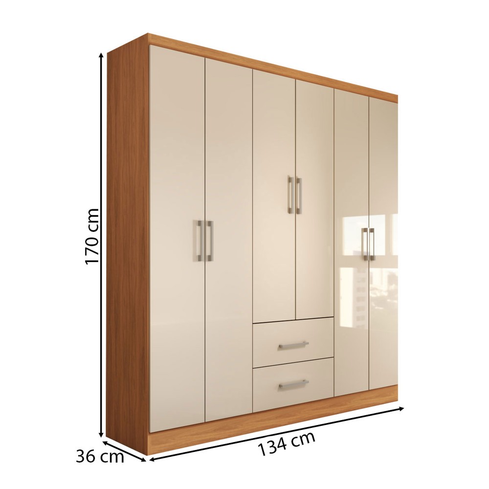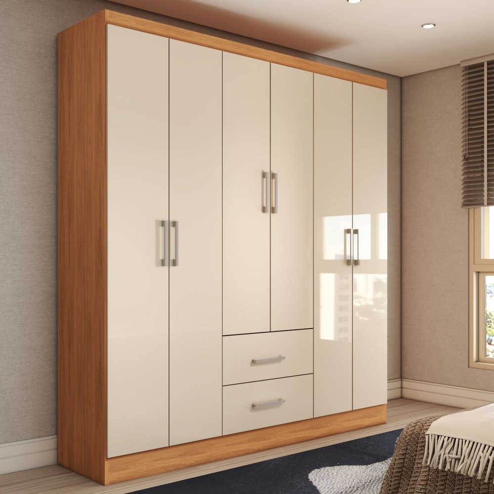 Guarda-Roupa Solteiro Bali 6 Portas 2 Gavetas Cinamomo/Off White - Panorama Móveis