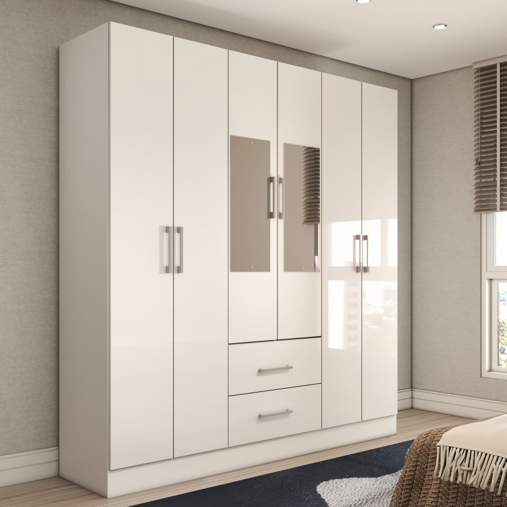 O(a) Guarda-Roupa Solteiro Bali 6 Portas 2 Gavetas com Espelho Branco - Panorama Móveis é produzido em MDP na escala de brilho Brilho e Semi-Brilho, e possui um grau de dificuldade de montagem: Médio.