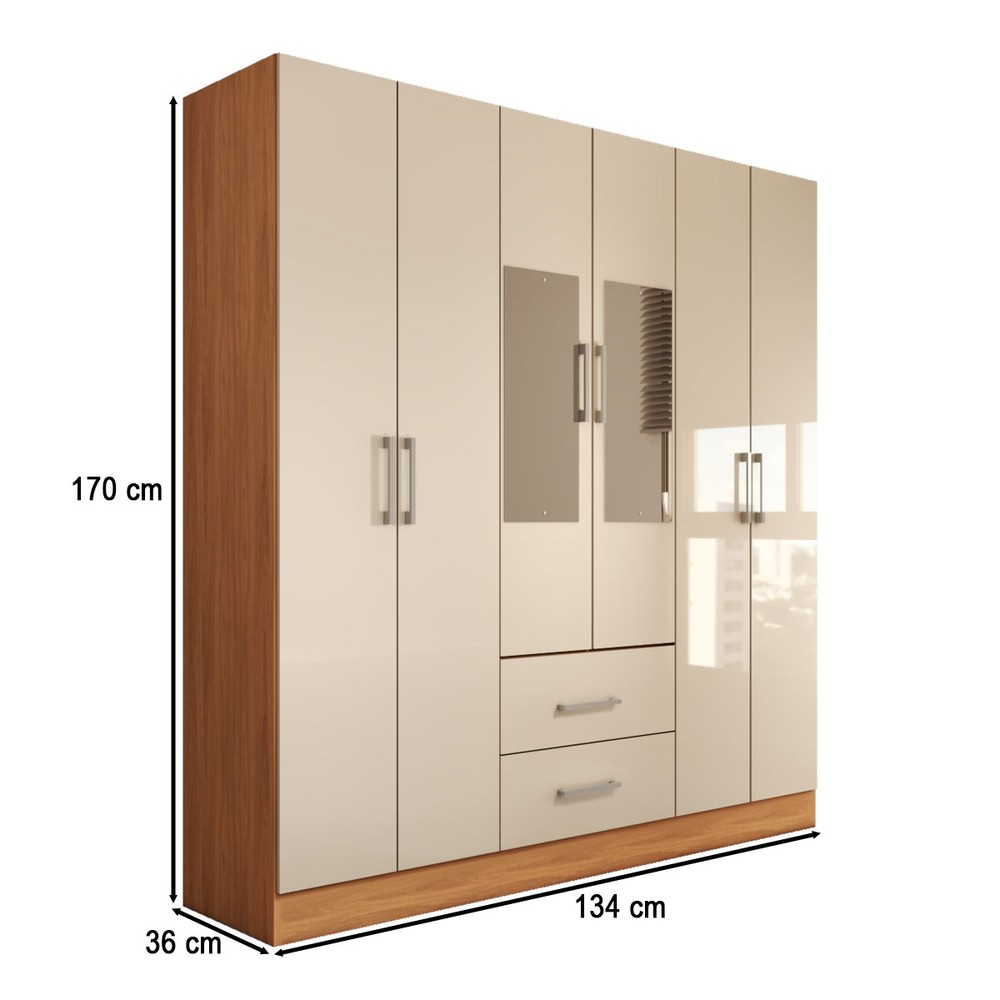 O(a) Guarda-Roupa Solteiro Bali 6 Portas 2 Gavetas com Espelho Cinamomo/Off White - Panorama Móveis é produzido em MDP na escala de brilho Brilho e Semi-Brilho, e possui um grau de dificuldade de montagem: Médio.