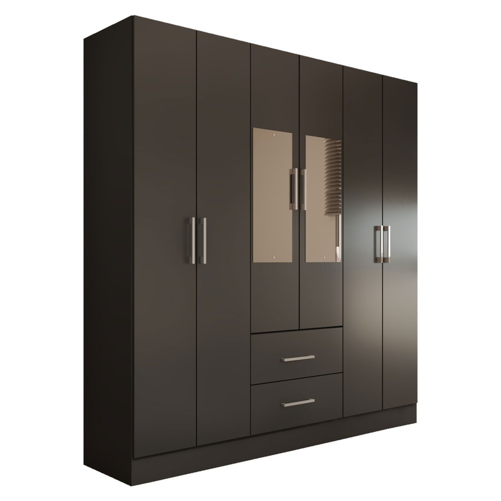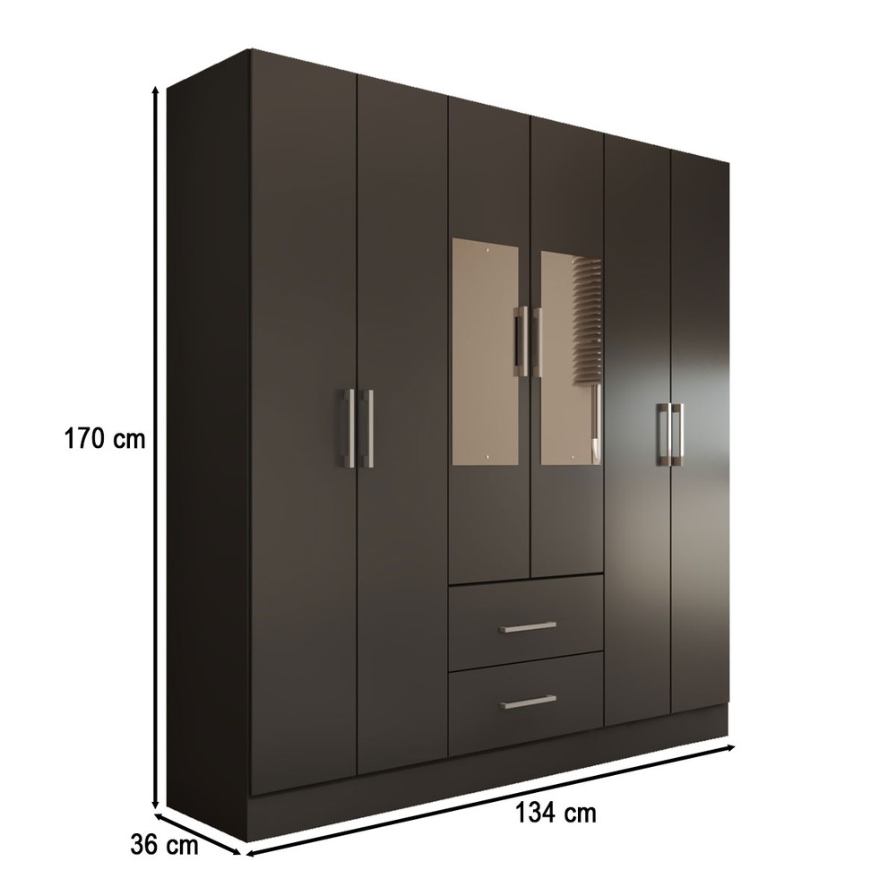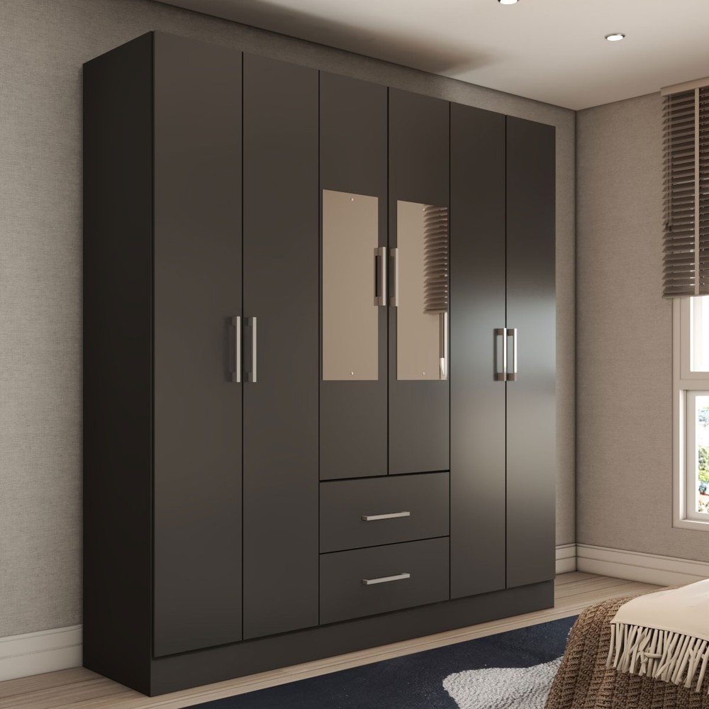 Guarda-Roupa Solteiro Bali 6 Portas 2 Gavetas com Espelho Preto - Panorama Móveis