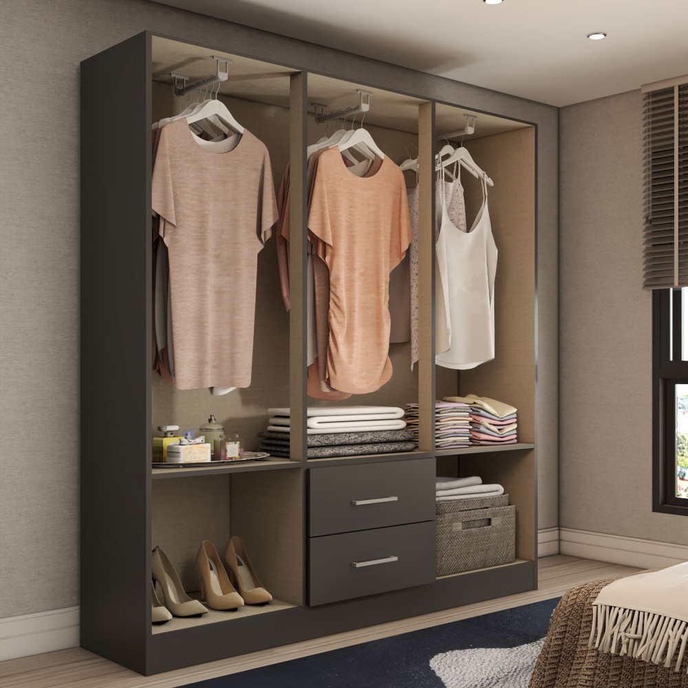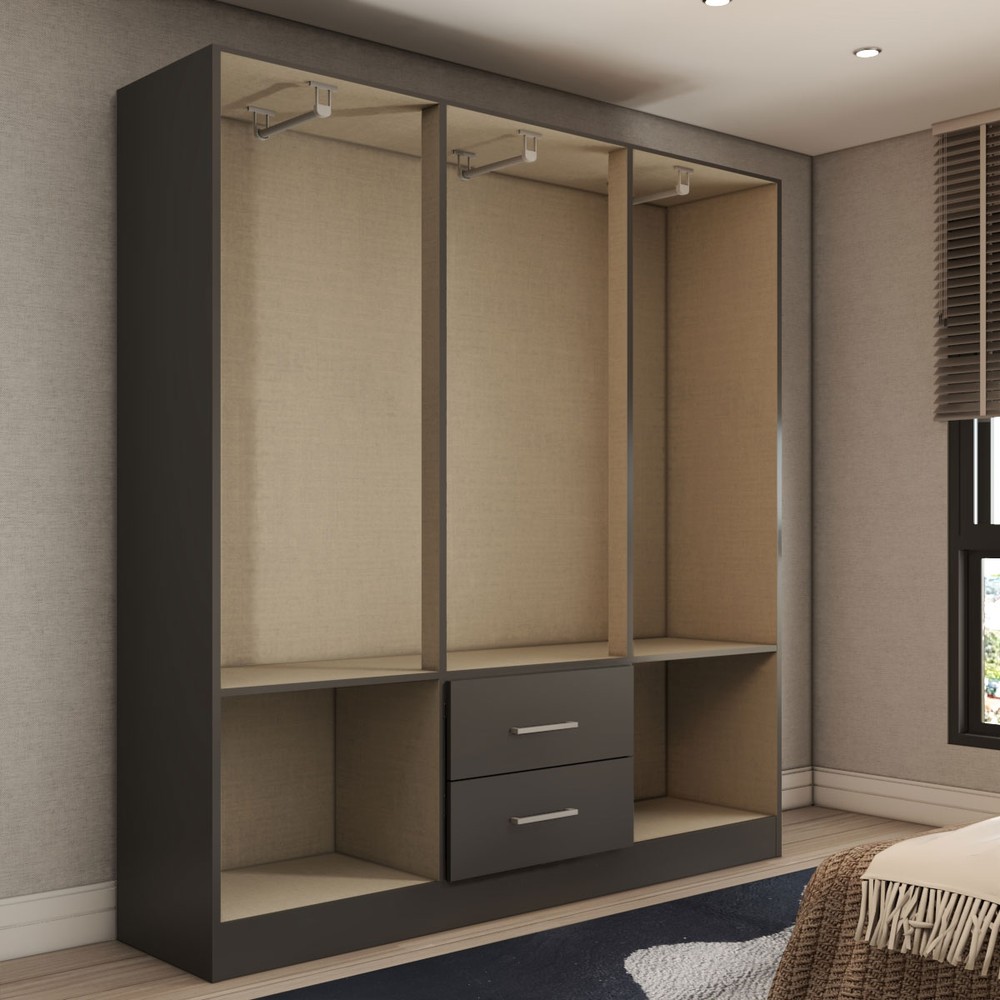 Acompanha Guarda-Roupa + Kit Ferragens + Manual de Montagem