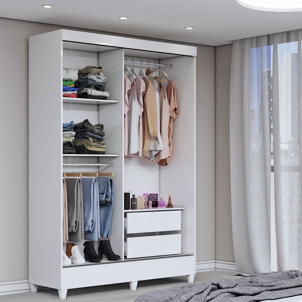 O(a) Guarda-Roupa Solteiro Bari 2 Portas 2 Gavetas Branco - Panorama Móveis é produzido em MDF, MDP e HDF na escala de brilho Brilho, e possui um grau de dificuldade de montagem: Médio.