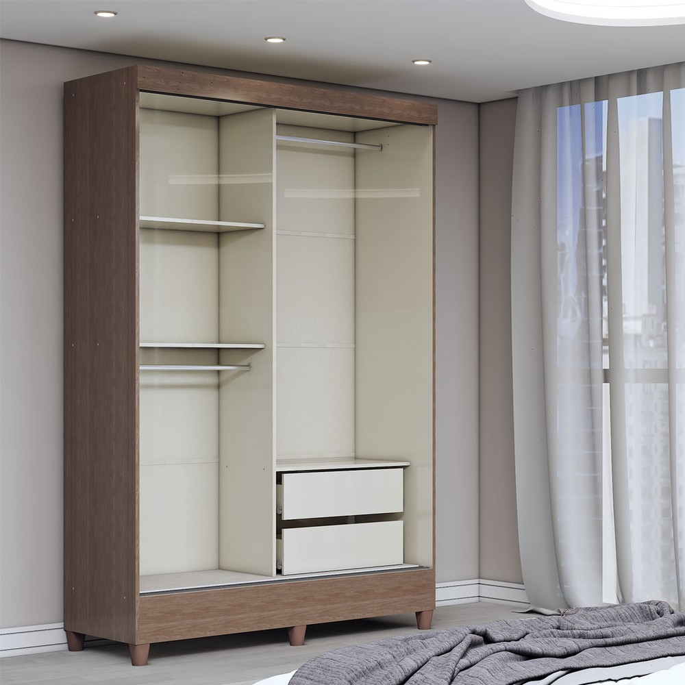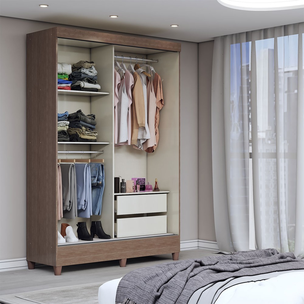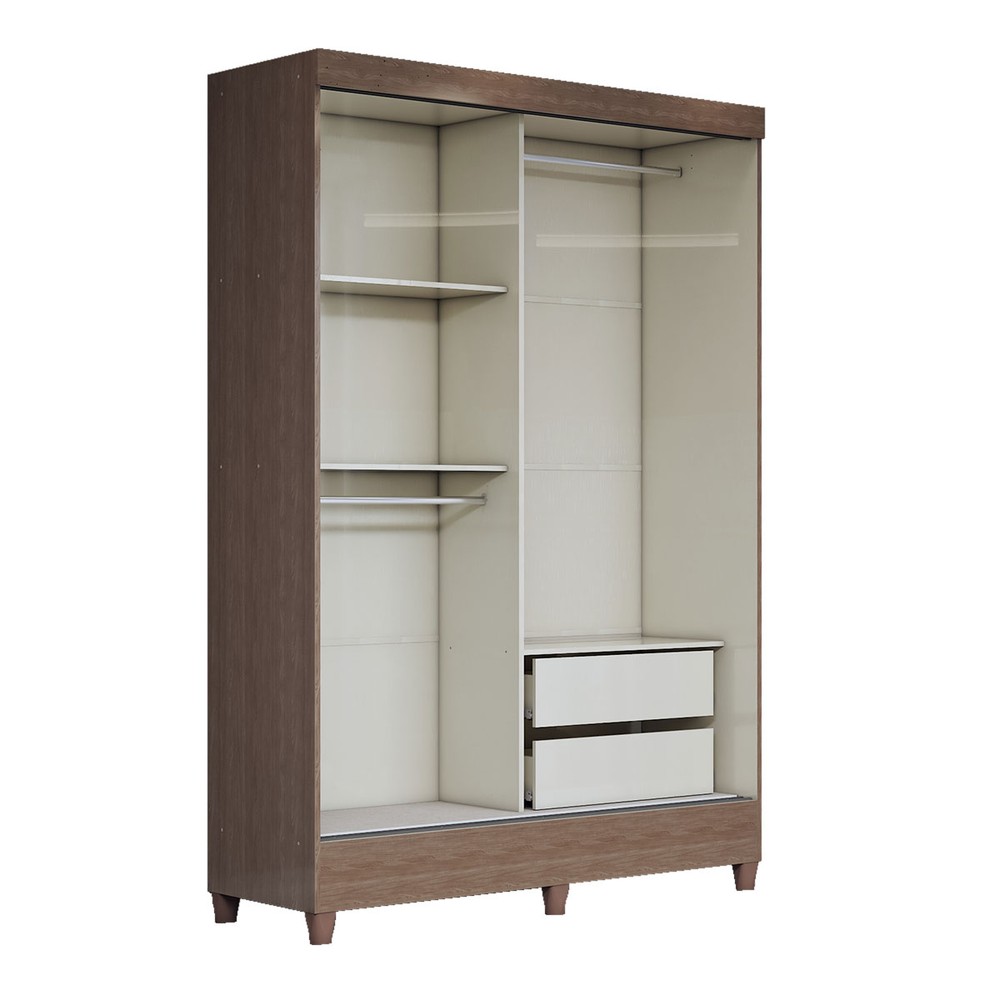 O(a) Guarda-Roupa Solteiro Bari 2 Portas 2 Gavetas Jequitiba/Off White - Panorama Móveis é produzido em MDF, MDP e HDF na escala de brilho Brilho, e possui um grau de dificuldade de montagem: Médio.