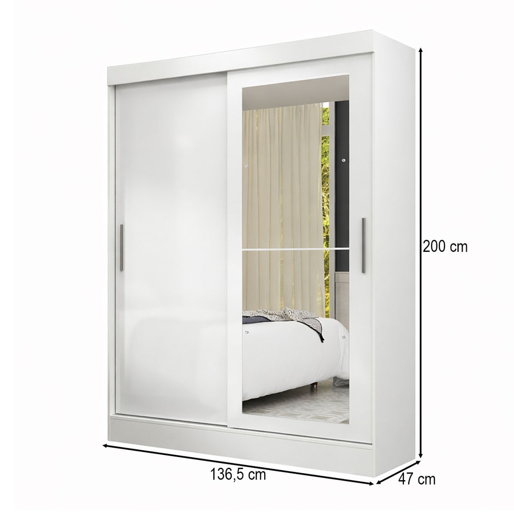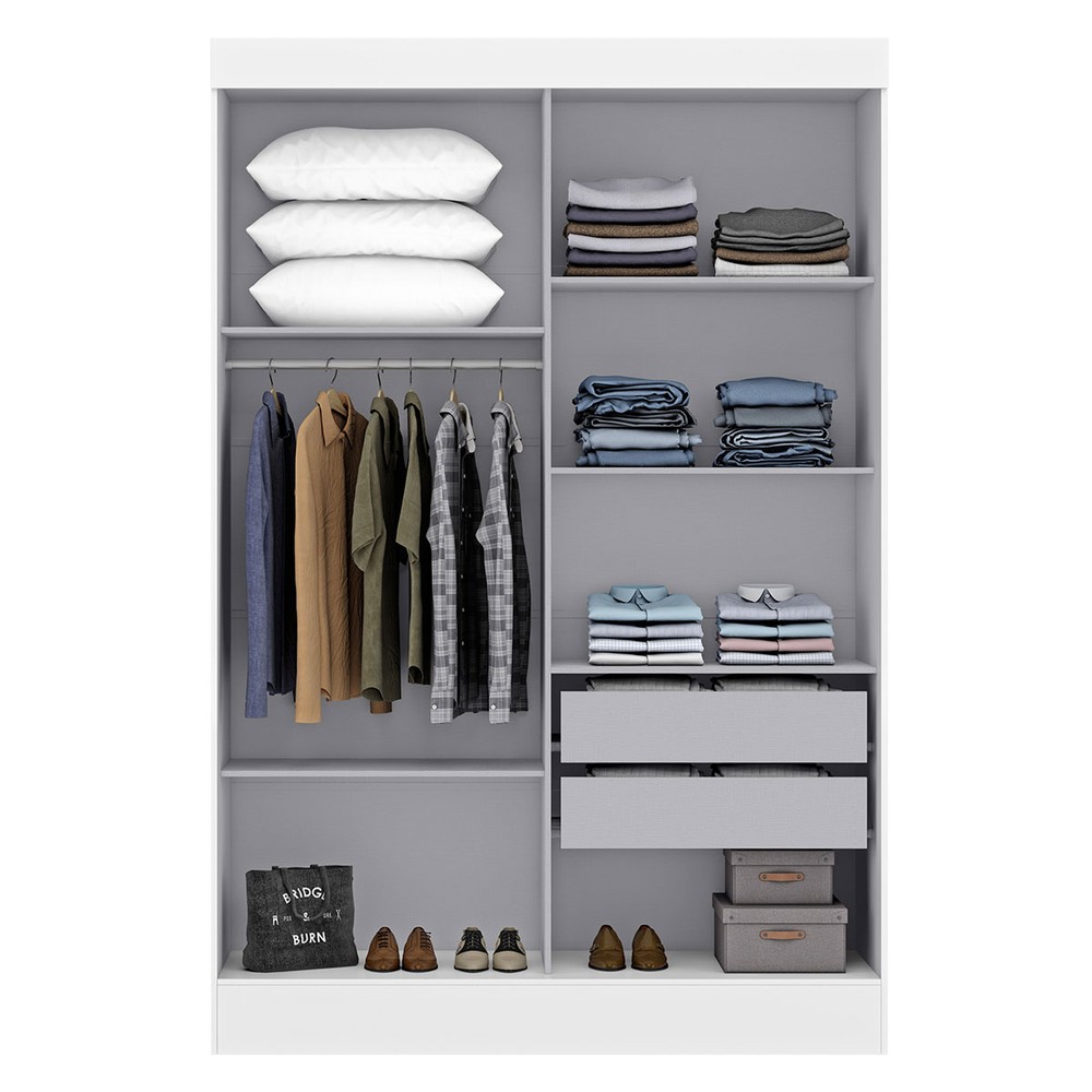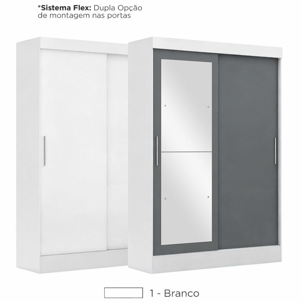 O(a) Guarda-Roupa Solteiro Cancun 2 Portas 2 Gavetas com Espelho Branco - Maxel é produzido em MDP na escala de brilho Fosco, e possui um grau de dificuldade de montagem: Médio.