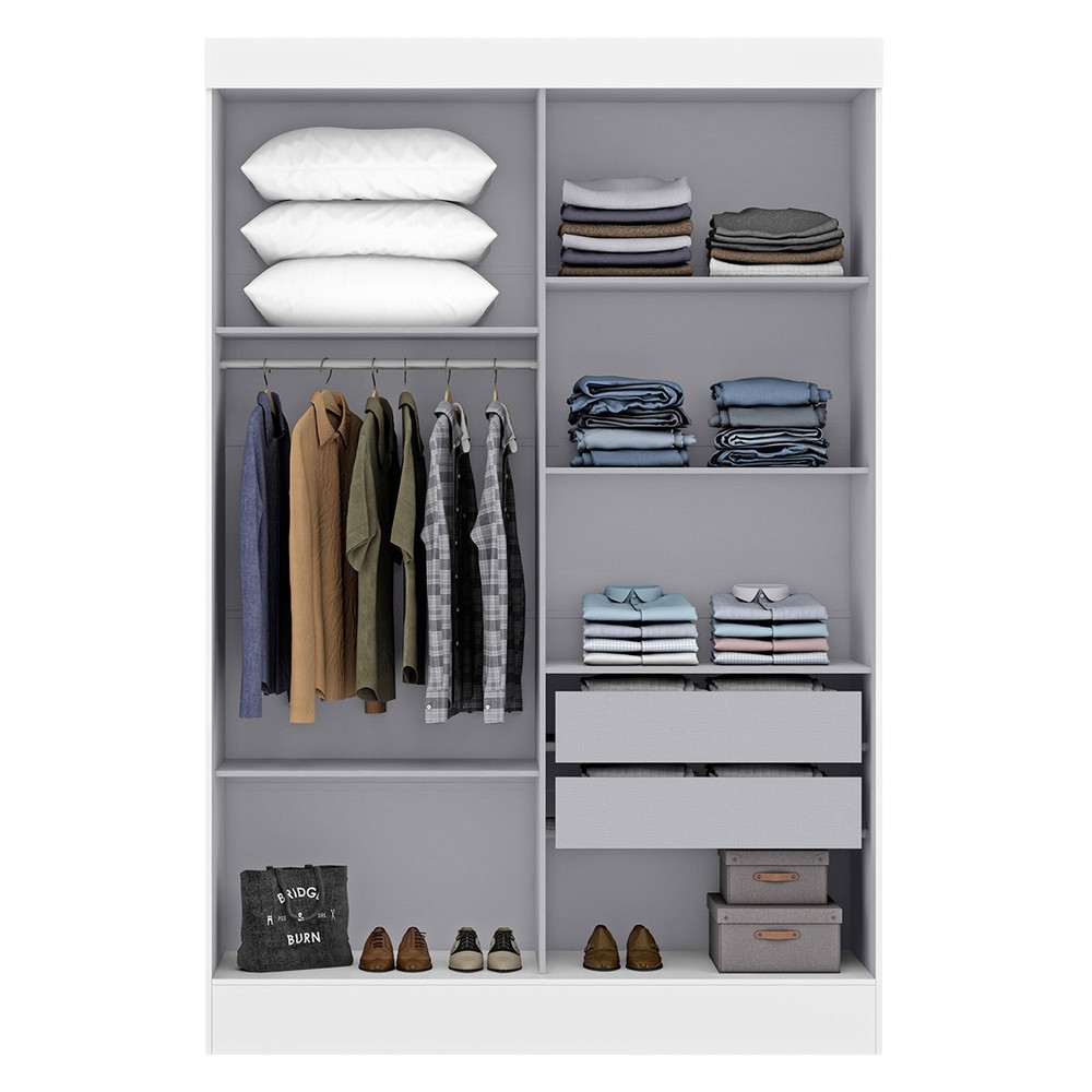 O(a) Guarda-Roupa Solteiro Cancun 2 Portas 2 Gavetas Branco - Maxel é produzido em MDP na escala de brilho Fosco, e possui um grau de dificuldade de montagem: Médio.