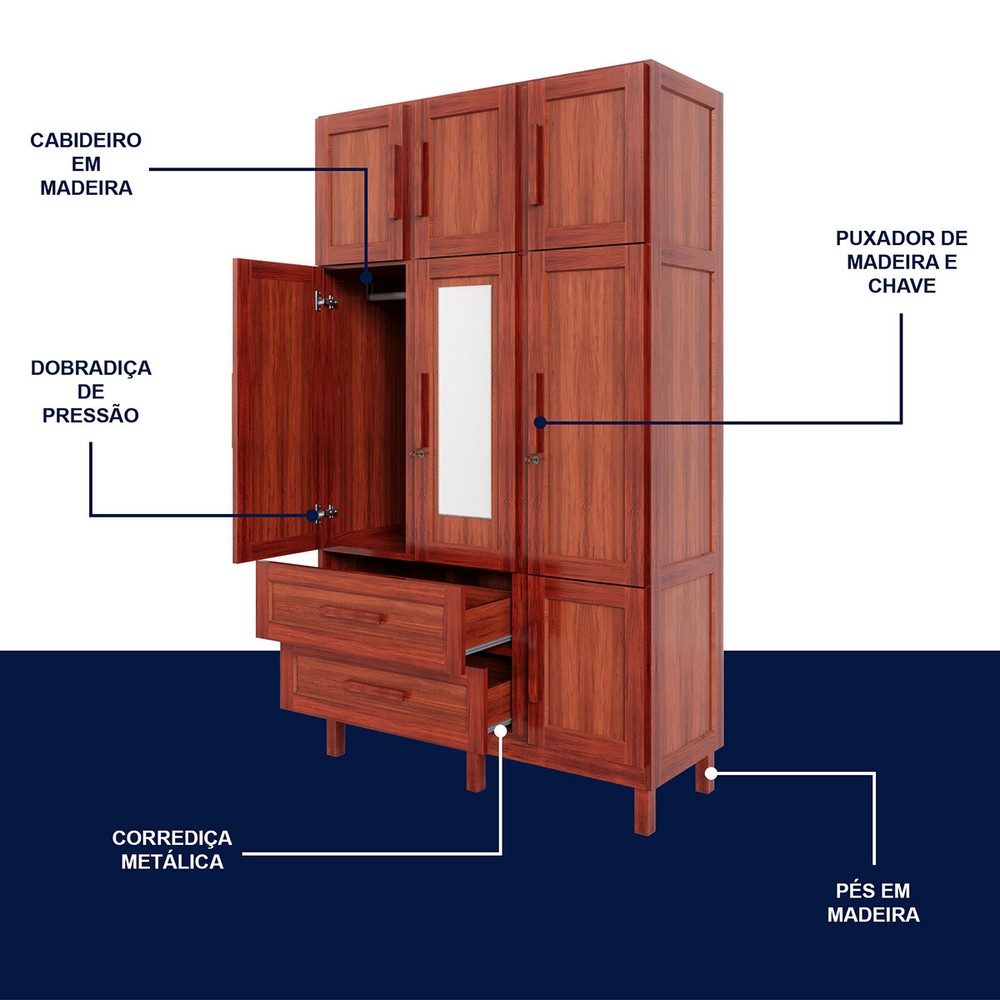 O(a) Guarda-Roupa Solteiro Ceará 7 Portas 2 Gavetas 2 Prateleiras com Espelho Mel - Rodmóveis é produzido em Madeira Maciça e HDF na escala de brilho Fosco, e possui um grau de dificuldade de montagem: Médio.