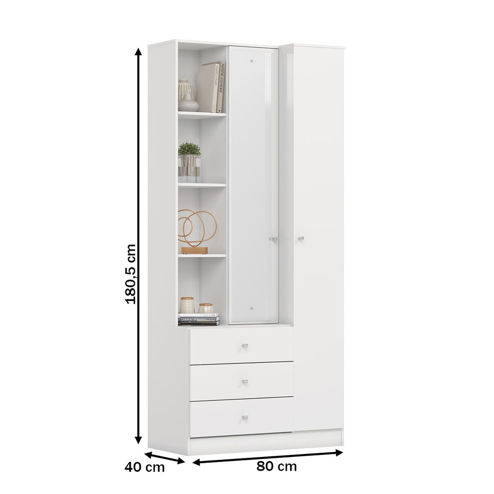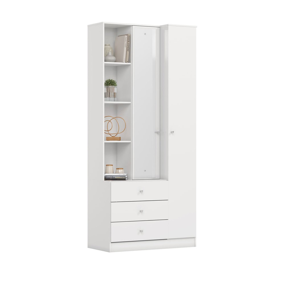 Guarda-Roupa Solteiro Creta 2 Portas 3 Gavetas com Espelho Branco - Pnr Móveis