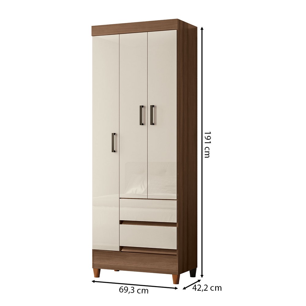 Guarda-Roupa Solteiro Fit 3 Portas 2 Gavetas Jequitiba/Off White - Santos Andirá