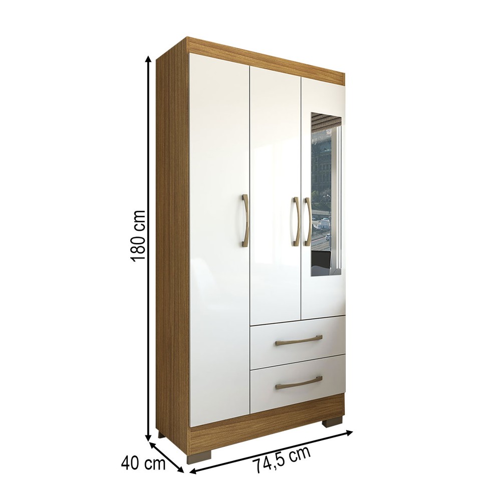 O(a) Guarda-Roupa Solteiro Florença 3 Portas 2 Gavetas com Espelho Marrocos/Off White - Panorama Móveis é produzido em MDP na escala de brilho Alto Brilho, e possui um grau de dificuldade de montagem: Médio.