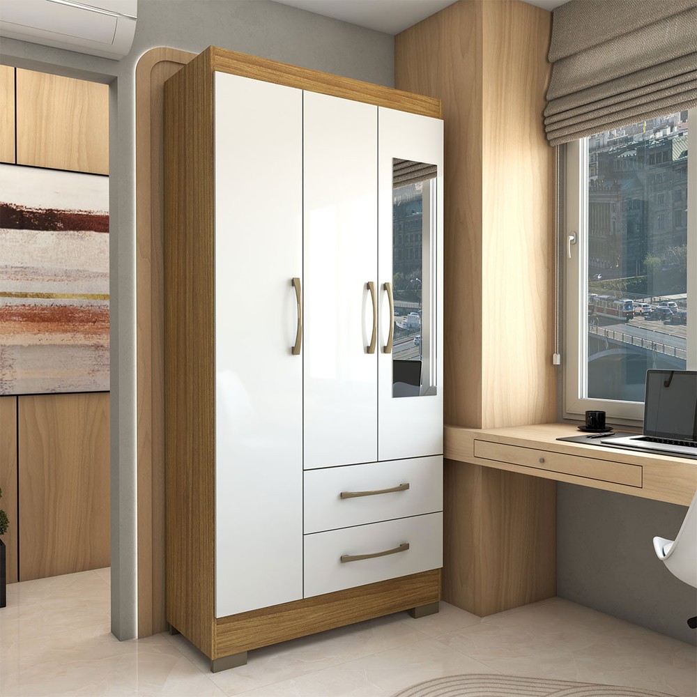 Guarda-Roupa Solteiro Florença 3 Portas 2 Gavetas com Espelho Marrocos/Off White - Panorama Móveis