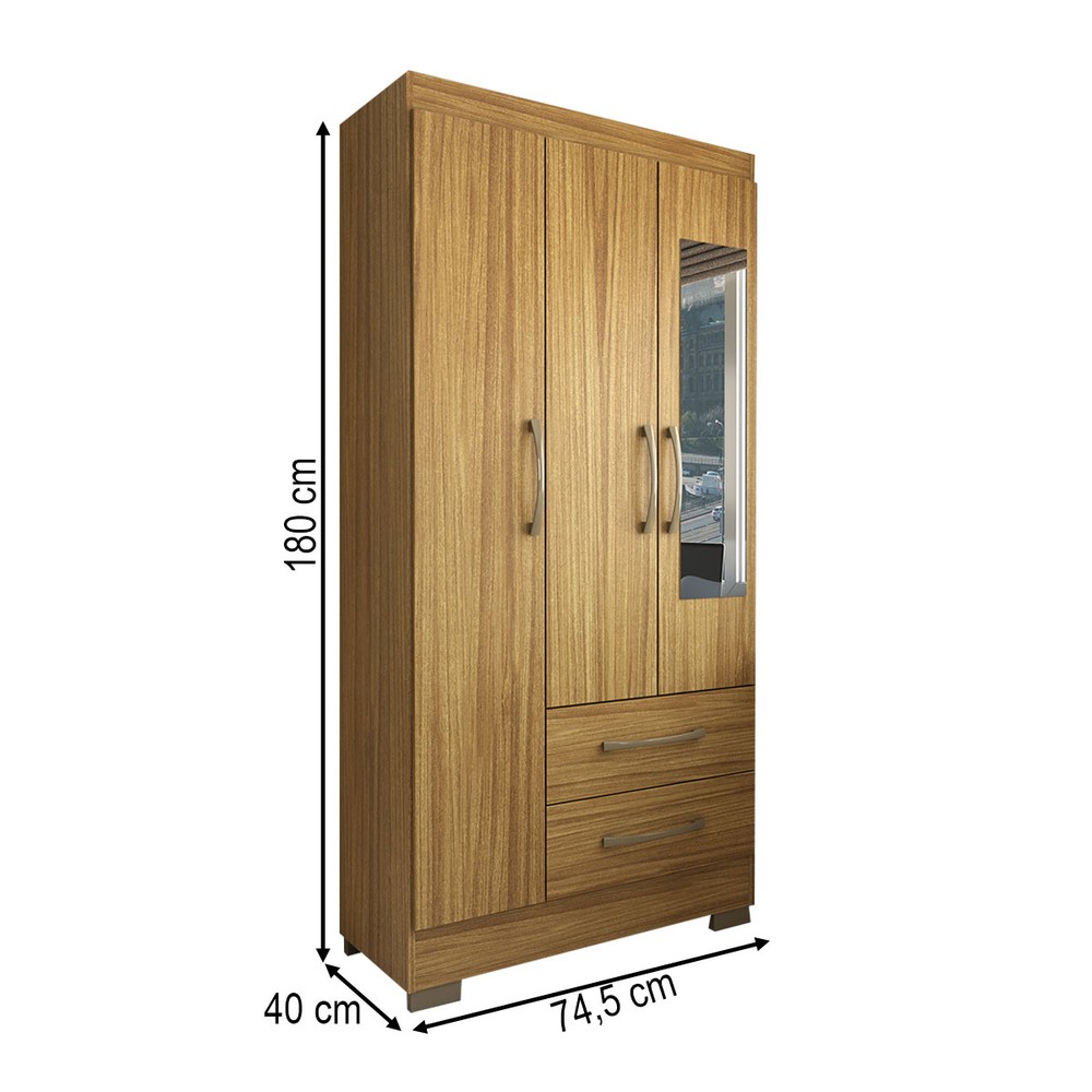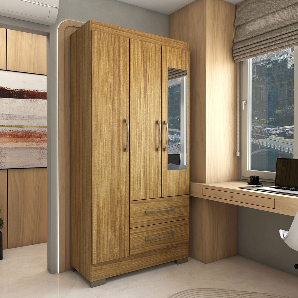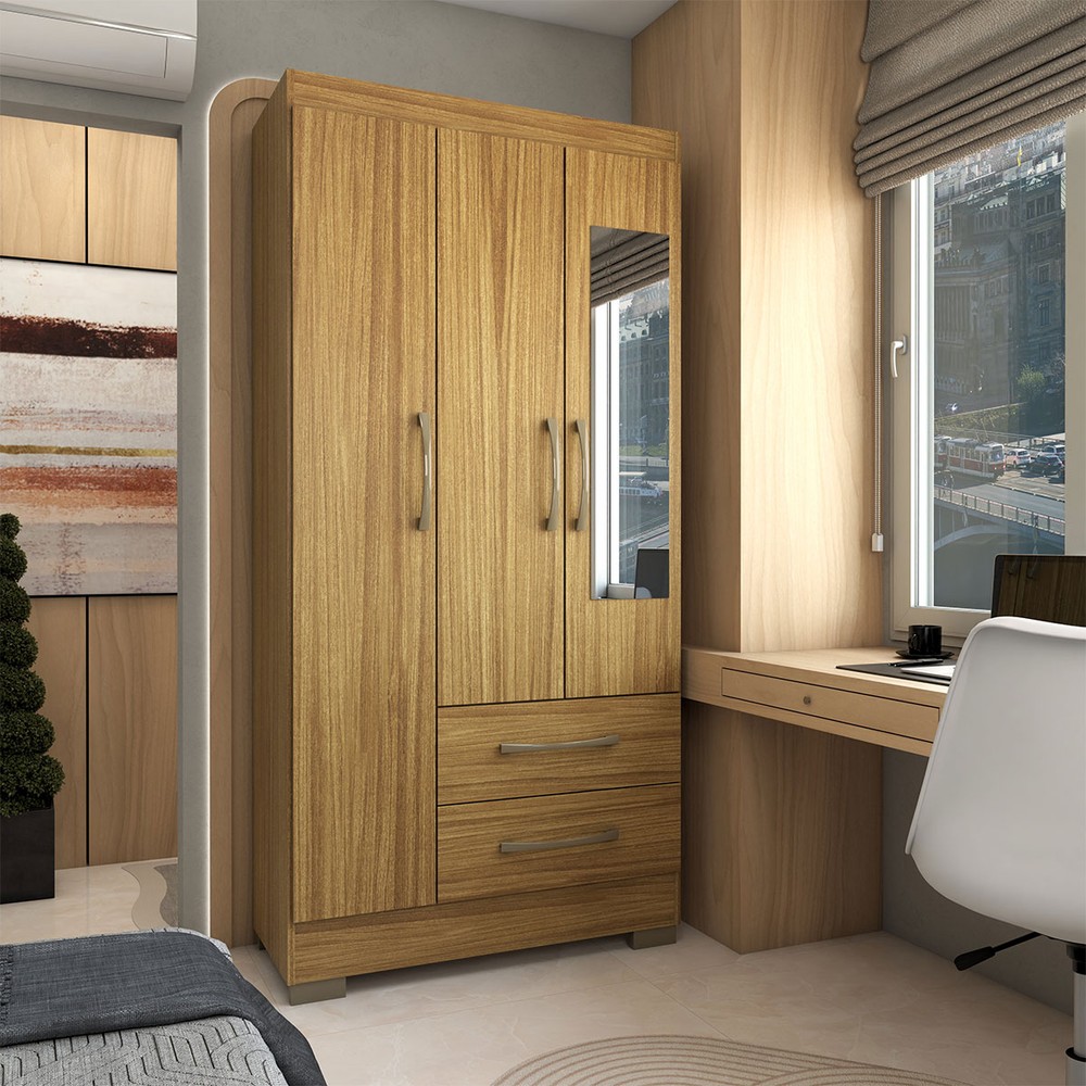Guarda-Roupa Solteiro Florença 3 Portas 2 Gavetas com Espelho Marrocos - Panorama Móveis