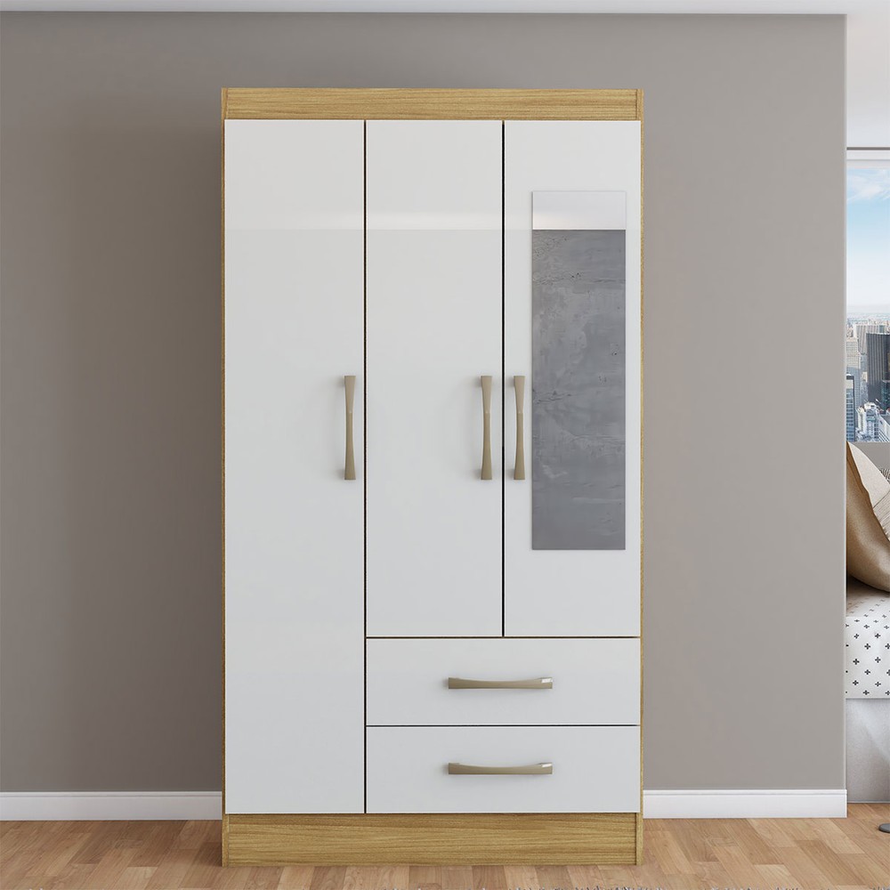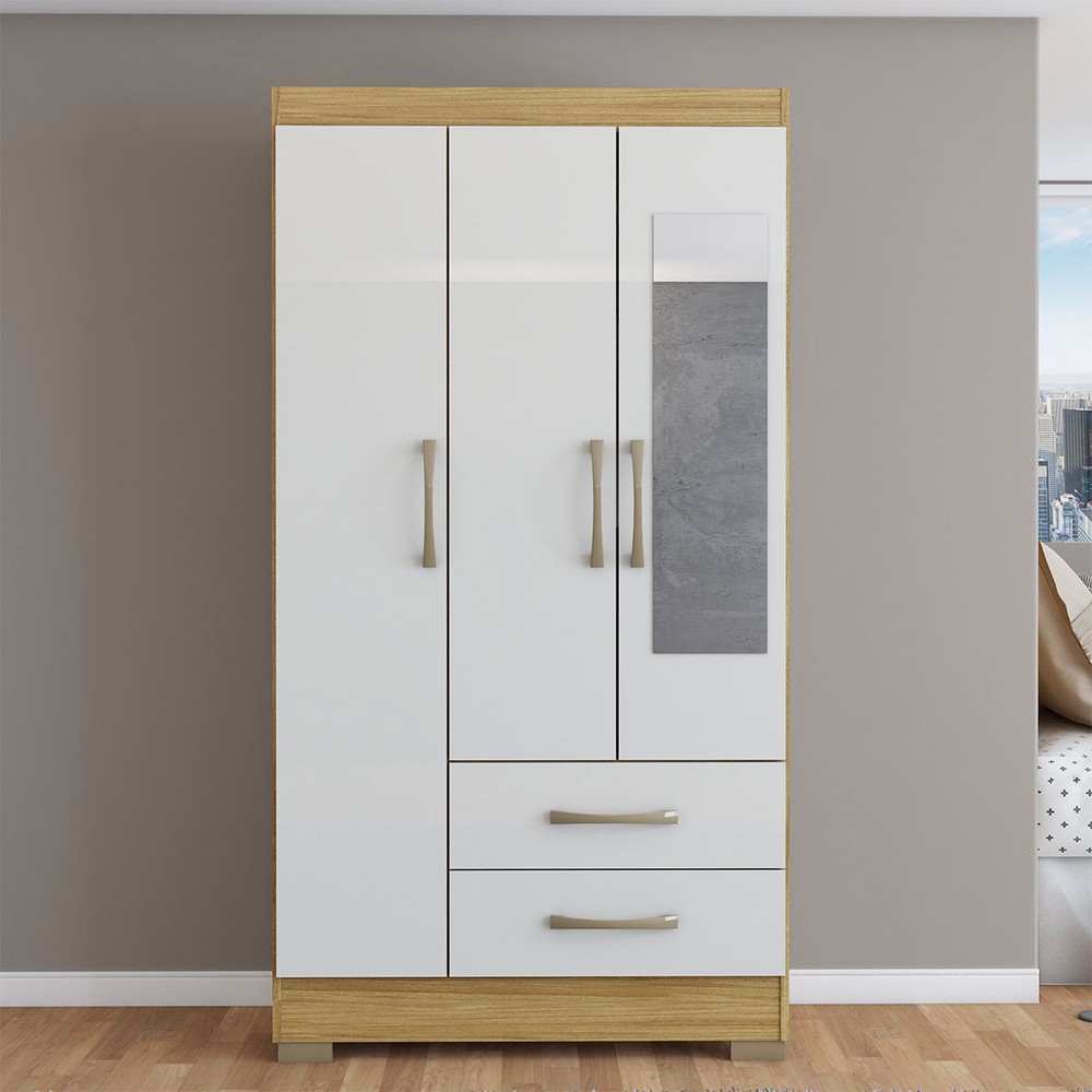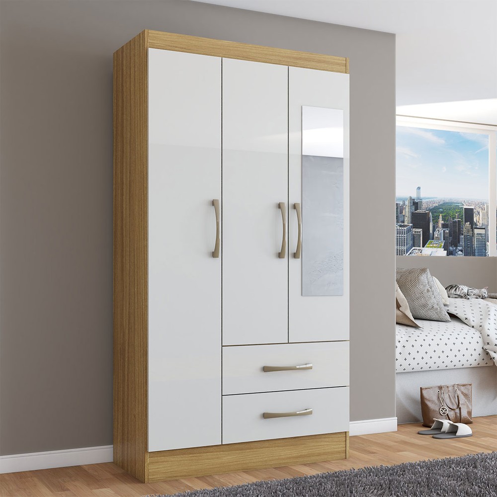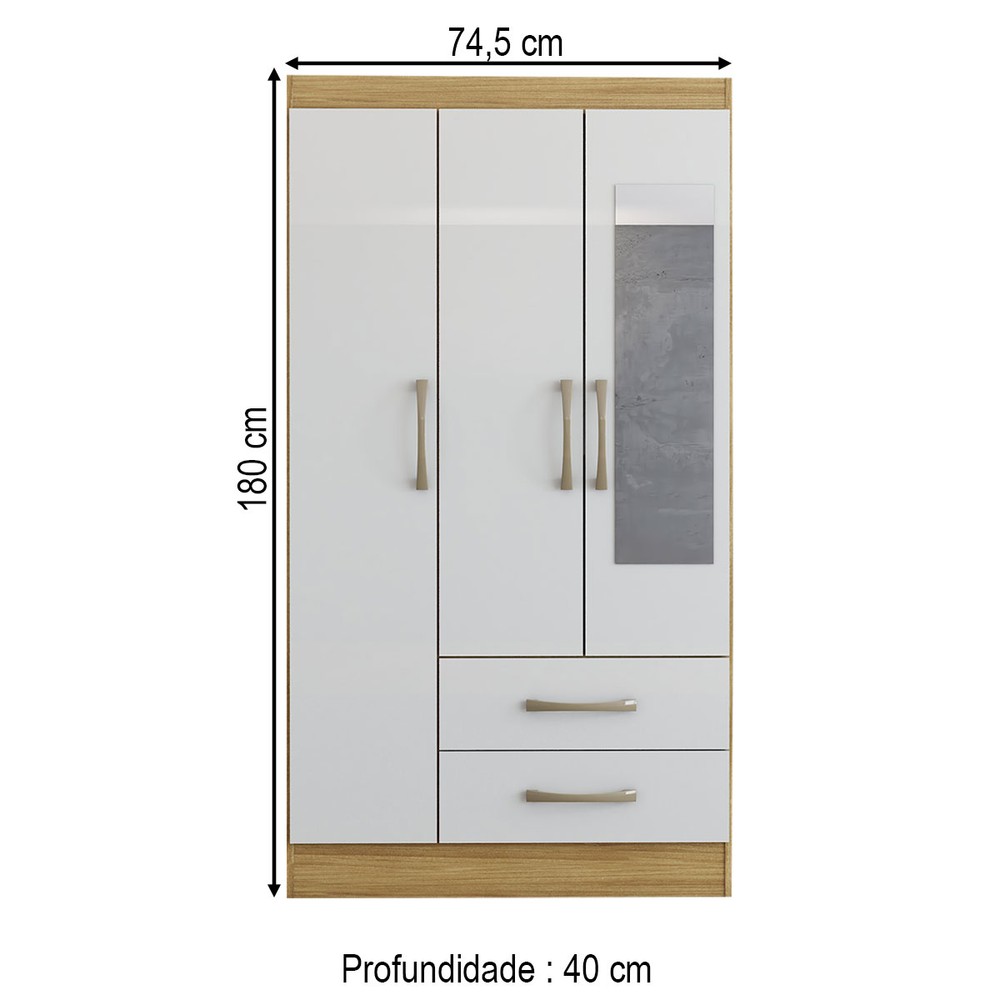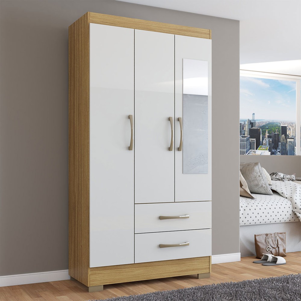 O(a) Guarda-Roupa Solteiro Florença 3 Portas 2 Gavetas com Espelho Rústico/Off White - Pnr Móveis é produzido em MDP na escala de brilho Fosco, e possui um grau de dificuldade de montagem: Médio.