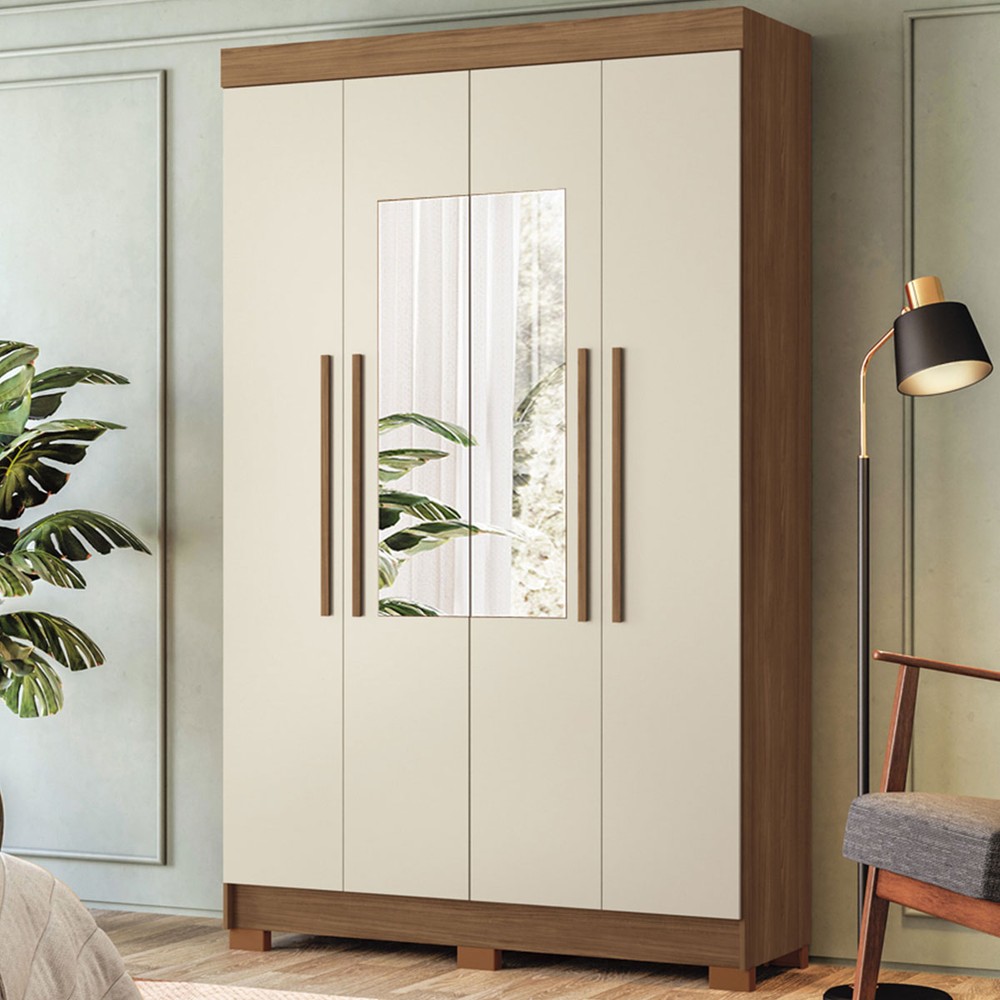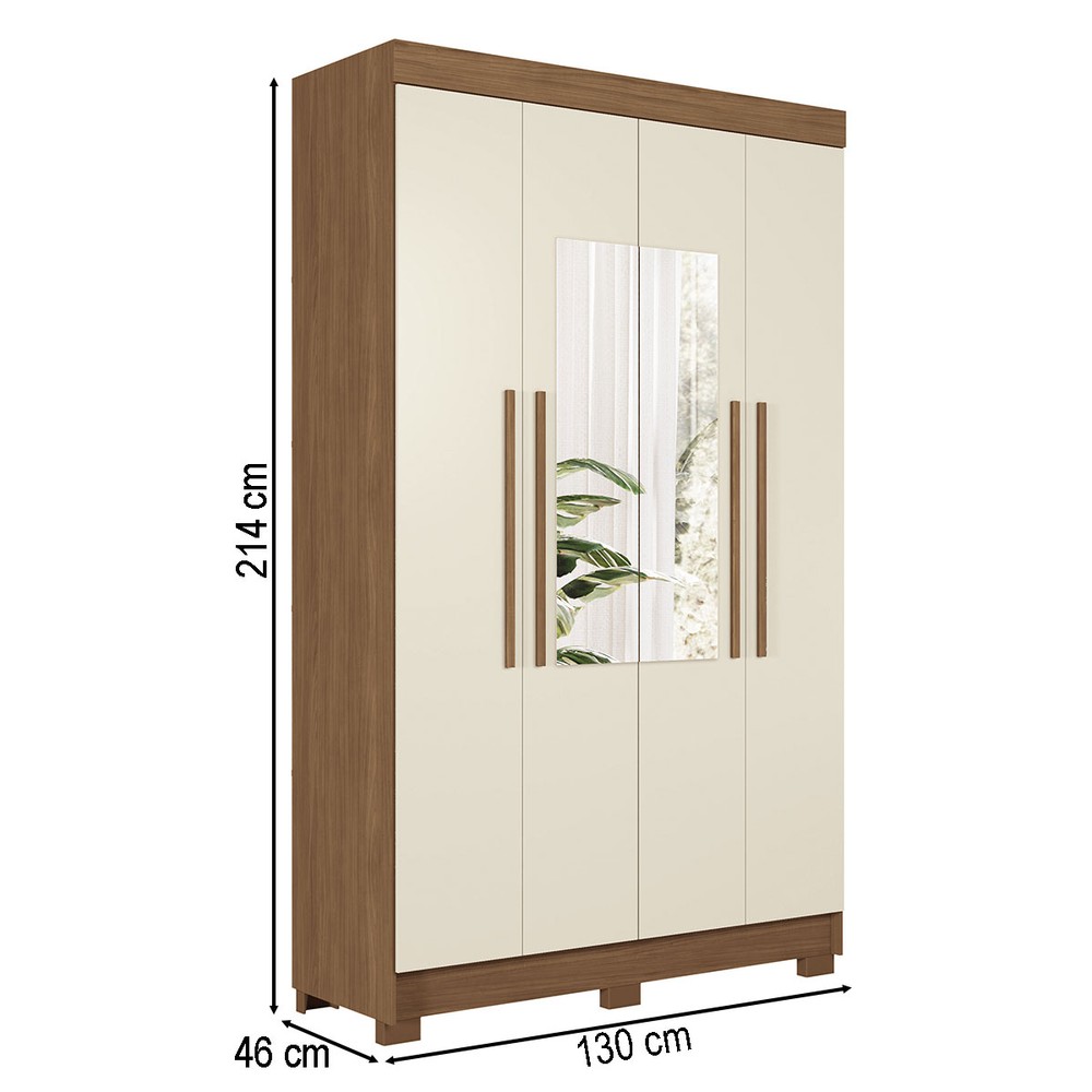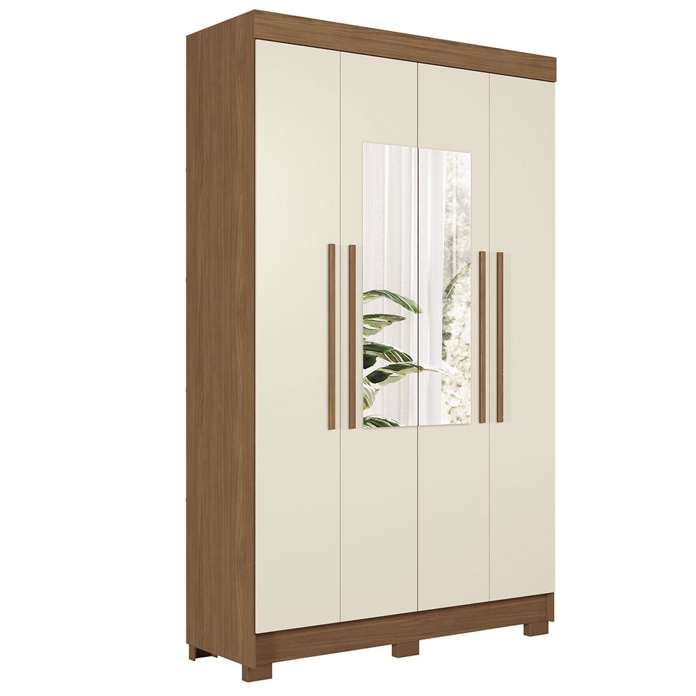 Guarda-Roupa Solteiro Iporá 4 Portas 2 Gavetas Jatoba/Areia com Espelho - Pnr Móveis