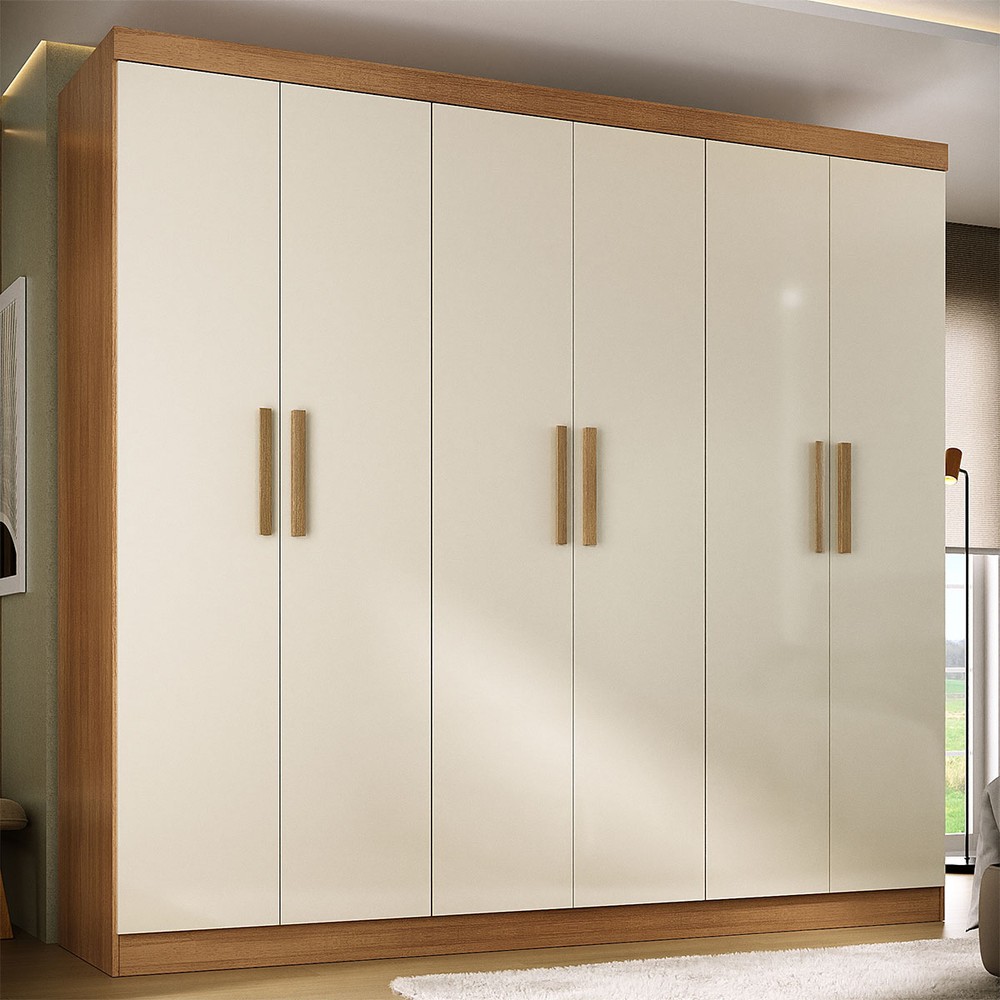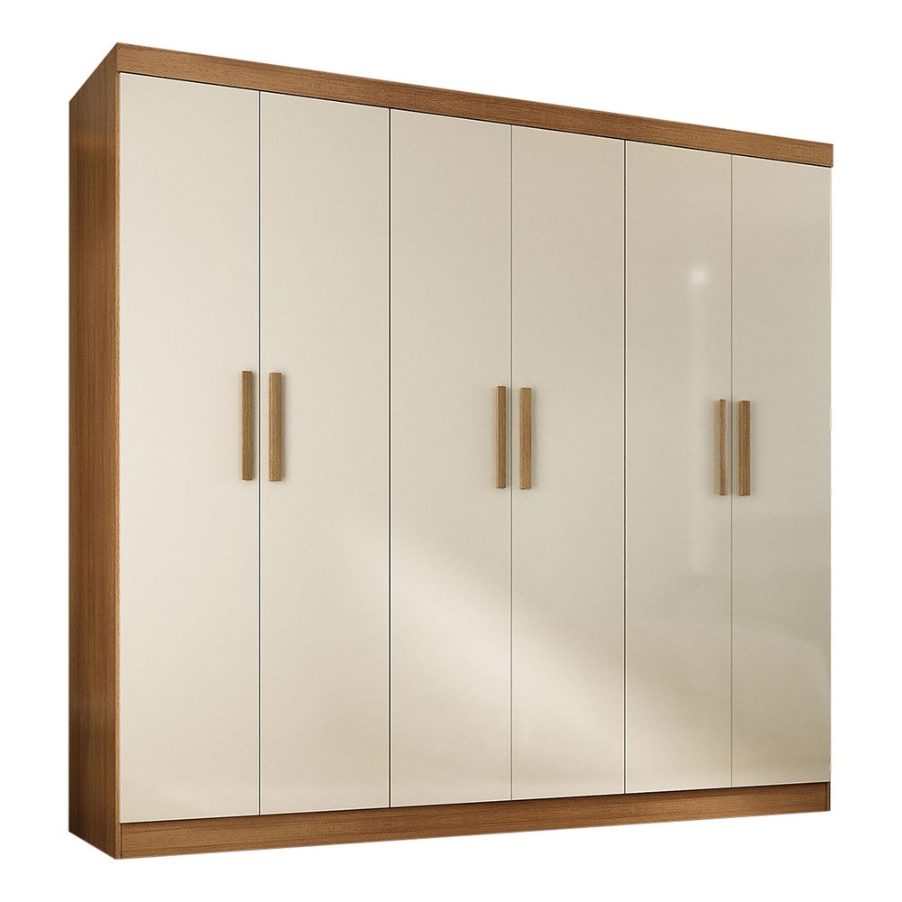 O(a) Guarda-Roupa Solteiro Lancaster 6 Portas 3 Gavetas 100% Mdf Cinamomo/Off White - Panorama Móveis é produzido em 100% MDF na escala de brilho Fosco, e possui um grau de dificuldade de montagem: Médio.