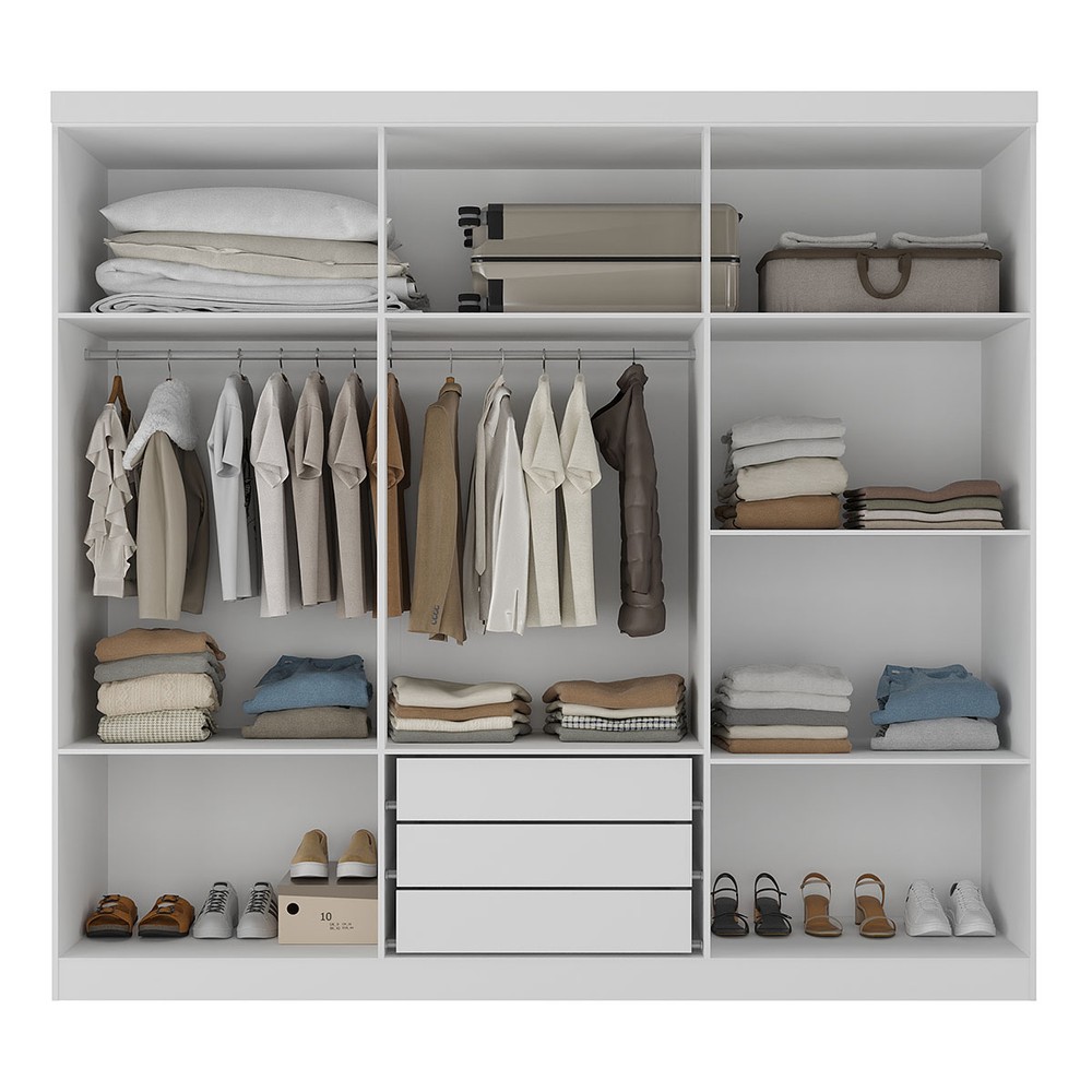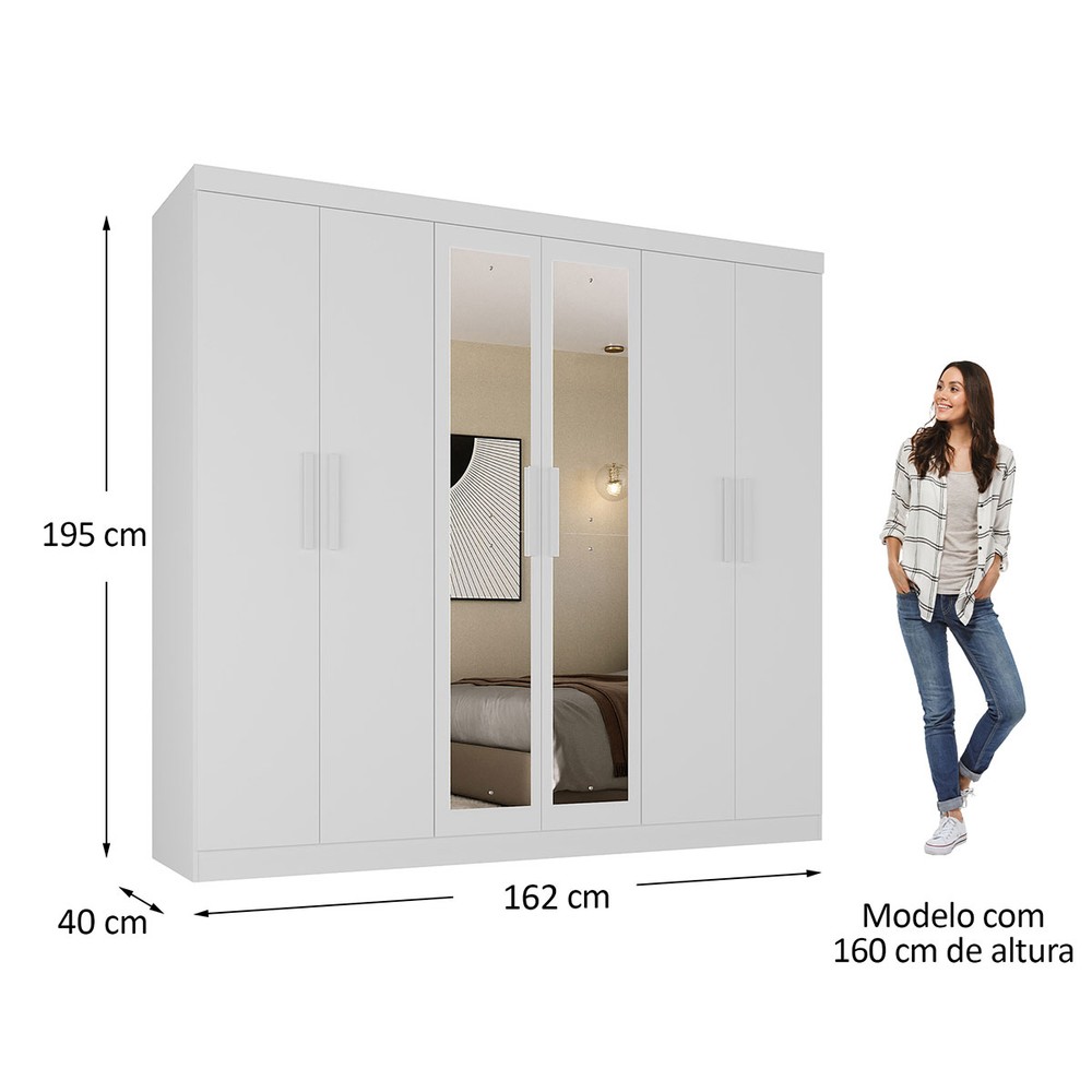 O(a) Guarda-Roupa Solteiro Lancaster 6 Portas 3 Gavetas 100% Mdf com Espelho Branco - Panorama Móveis é produzido em 100% MDF na escala de brilho Fosco, e possui um grau de dificuldade de montagem: Médio.