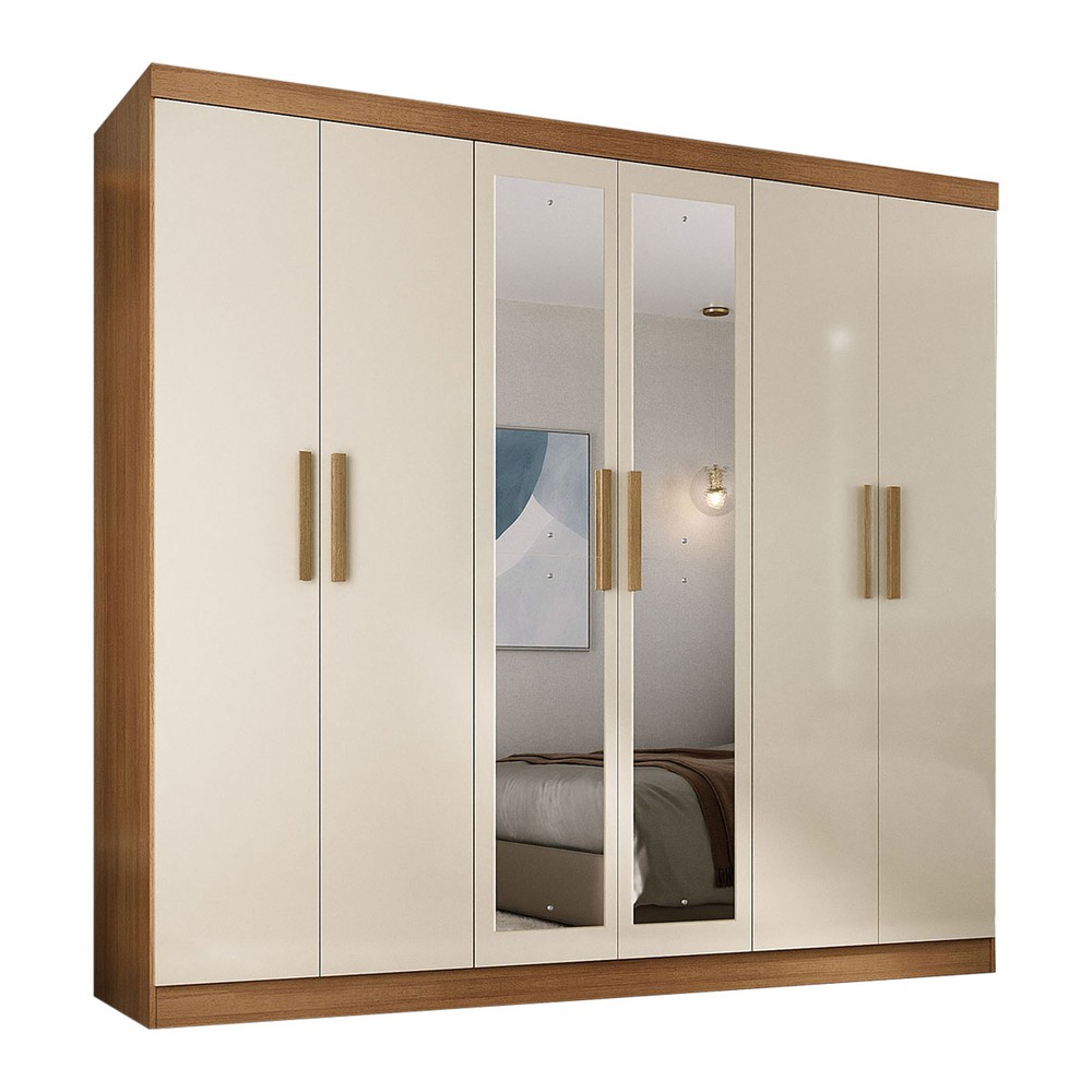 O(a) Guarda-Roupa Solteiro Lancaster 6 Portas 3 Gavetas 100% Mdf com Espelho Cinamomo/Off White - Panorama Móveis é produzido em 100% MDF na escala de brilho Fosco, e possui um grau de dificuldade de montagem: Médio.