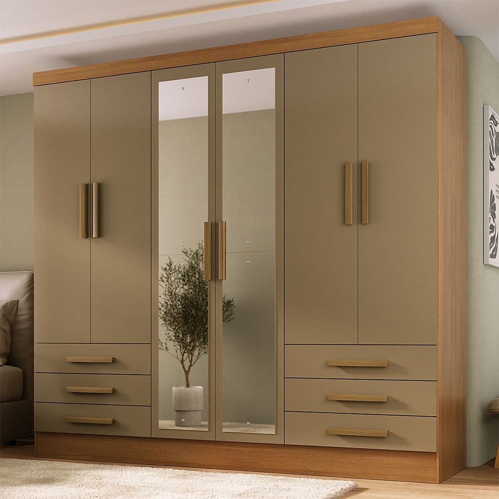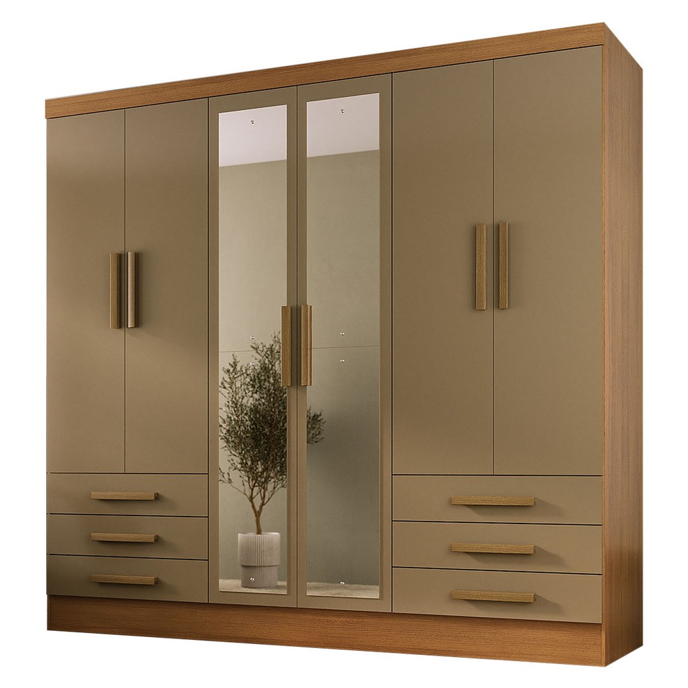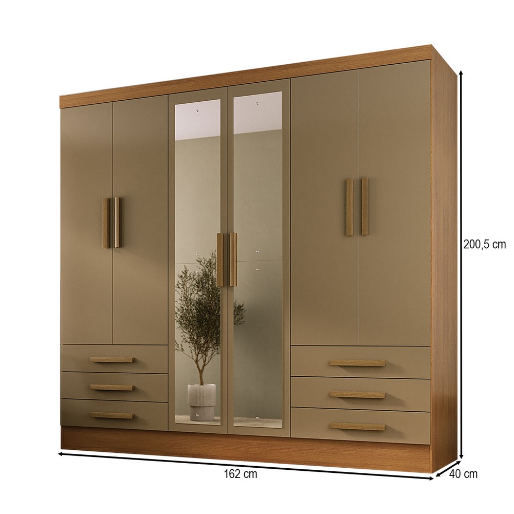 O(a) Guarda-Roupa Solteiro Lancaster 6 Portas 6 Gavetas 100% Mdf com Espelho Cinamomo/Cappuccino - Panorama Móveis é produzido em 100% MDF na escala de brilho Semi-Brilho, e possui um grau de dificuldade de montagem: Médio.