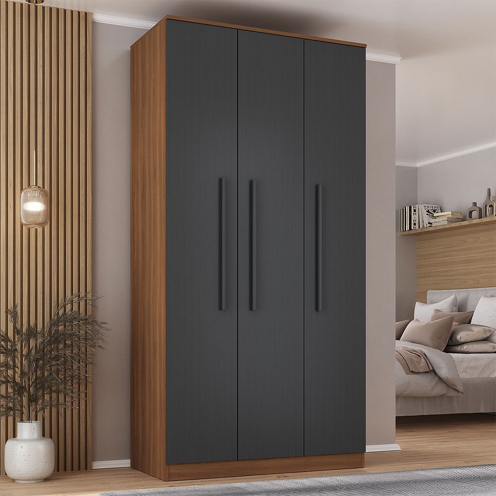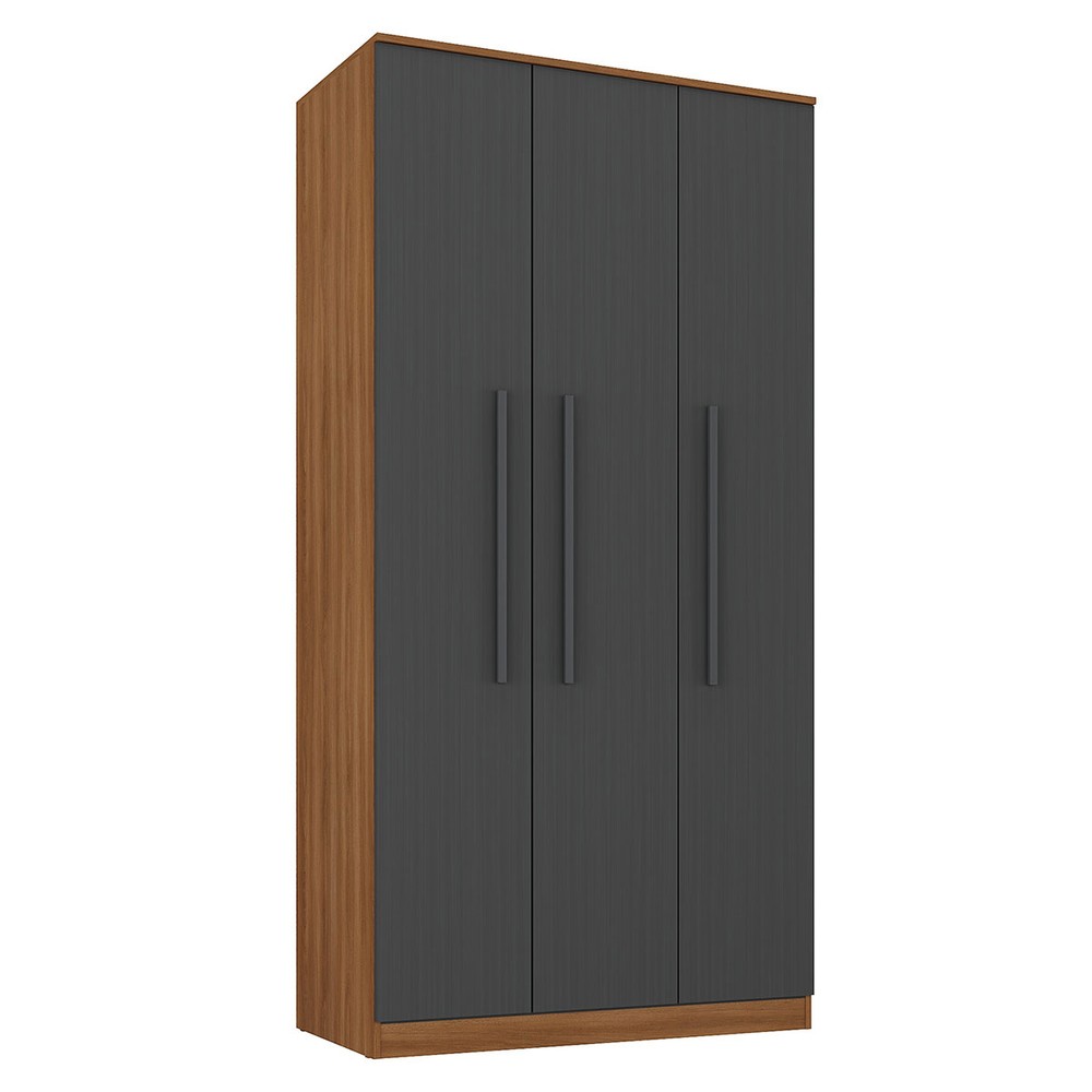 Guarda-Roupa Solteiro Lugano 3 Portas 2 Gavetas Nogal/Grafite - Hecol Móveis