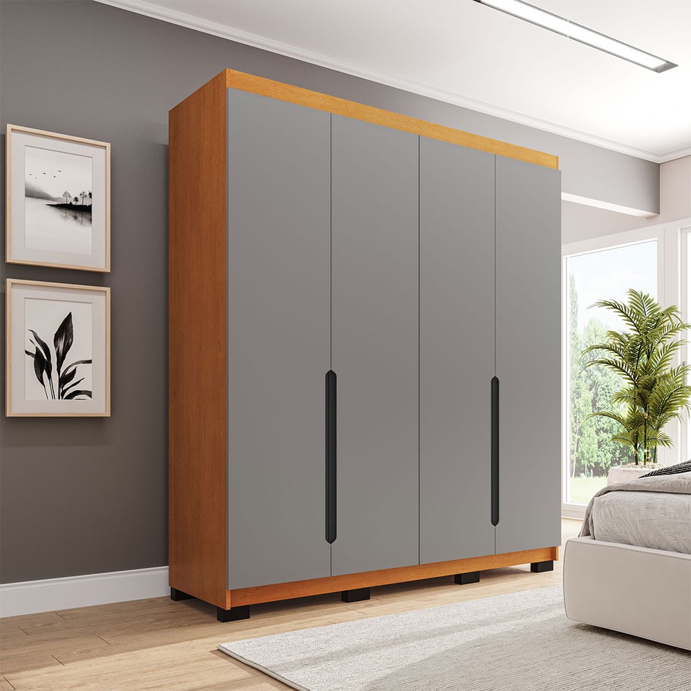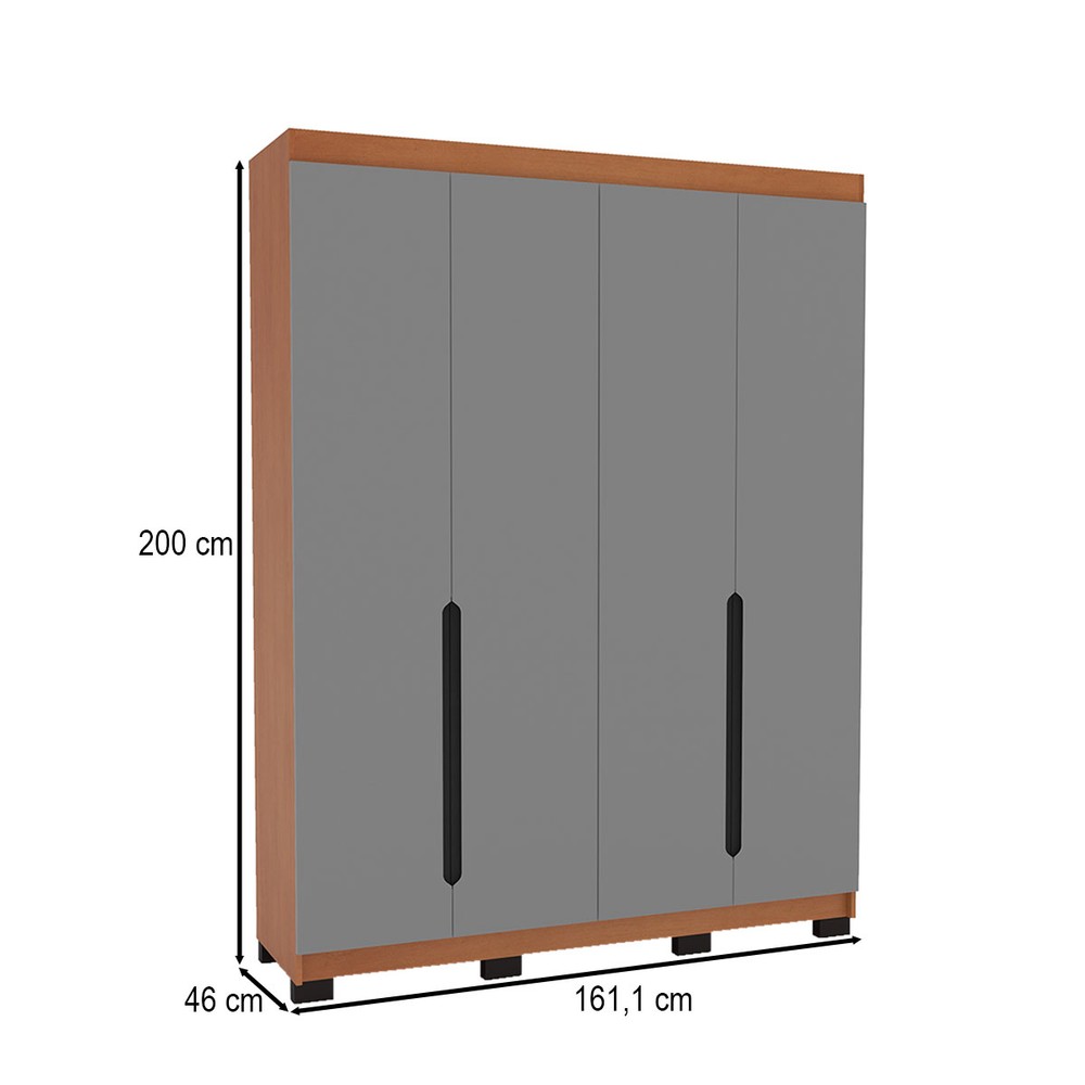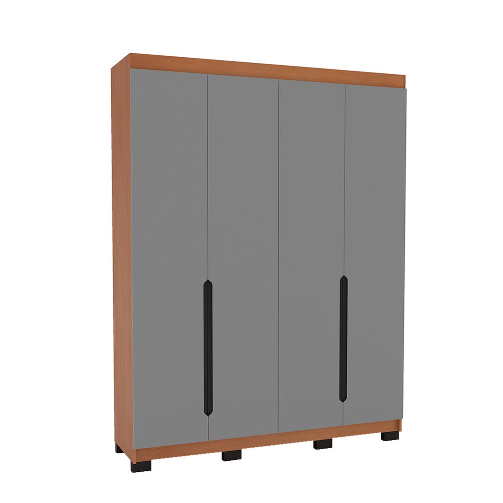 Guarda-Roupa Solteiro Madrid 4 Portas 4 Gavetas Cinza/Freijó - Politorno