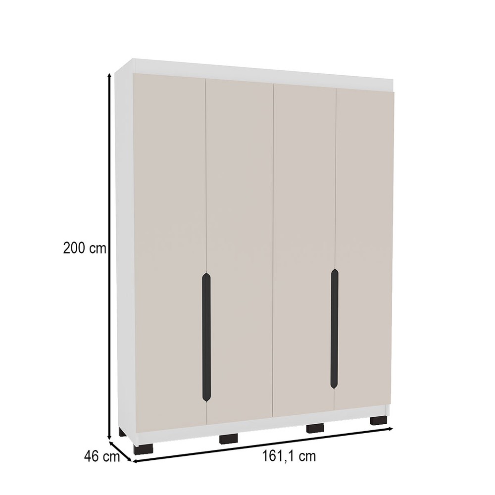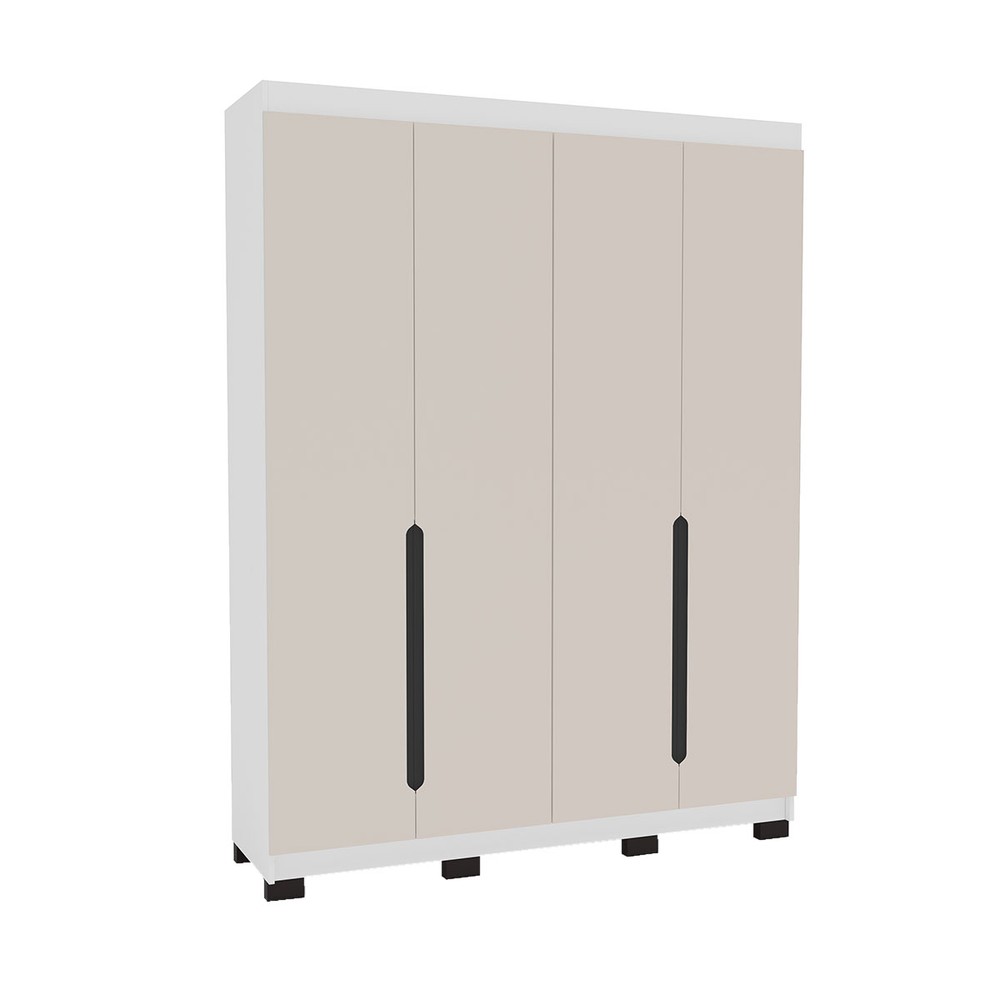 Guarda-Roupa Solteiro Madrid 4 Portas 4 Gavetas Creme/Branco - Politorno