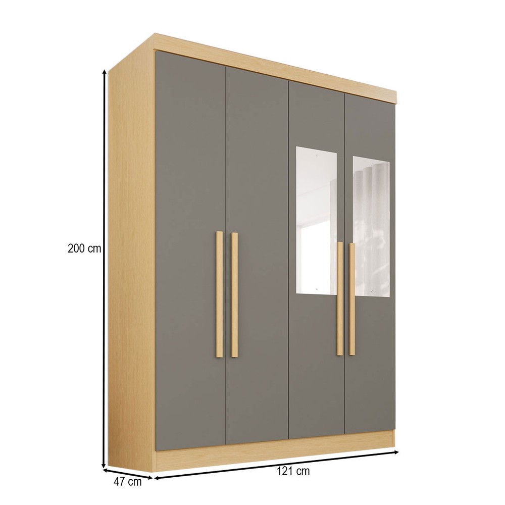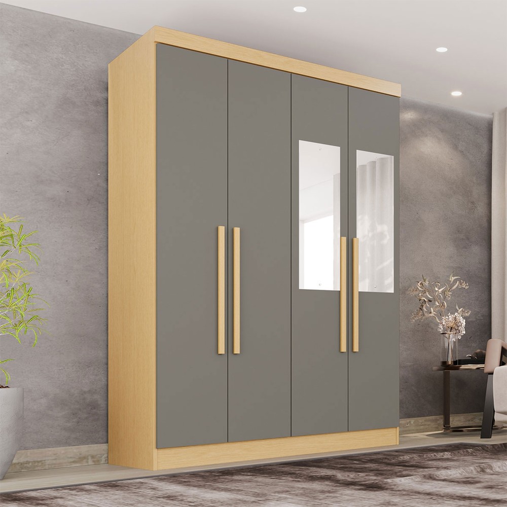 O(a) Guarda-Roupa Solteiro Max 4 Portas 2 Gavetas com Espelho Jequitibá/Granizo - Pnr Móveis é produzido em MDP na escala de brilho Brilho, Fosco e Semi-Brilho, e possui um grau de dificuldade de montagem: Médio.