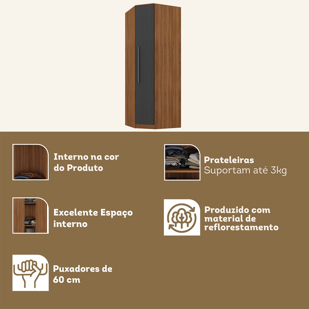 O(a) Guarda-Roupa Modulado Lugano 1 Porta 2 Prateleiras Nogal/Grafite - Hecol Móveis é produzido em MDP na escala de brilho Fosco, e possui um grau de dificuldade de montagem: Médio.