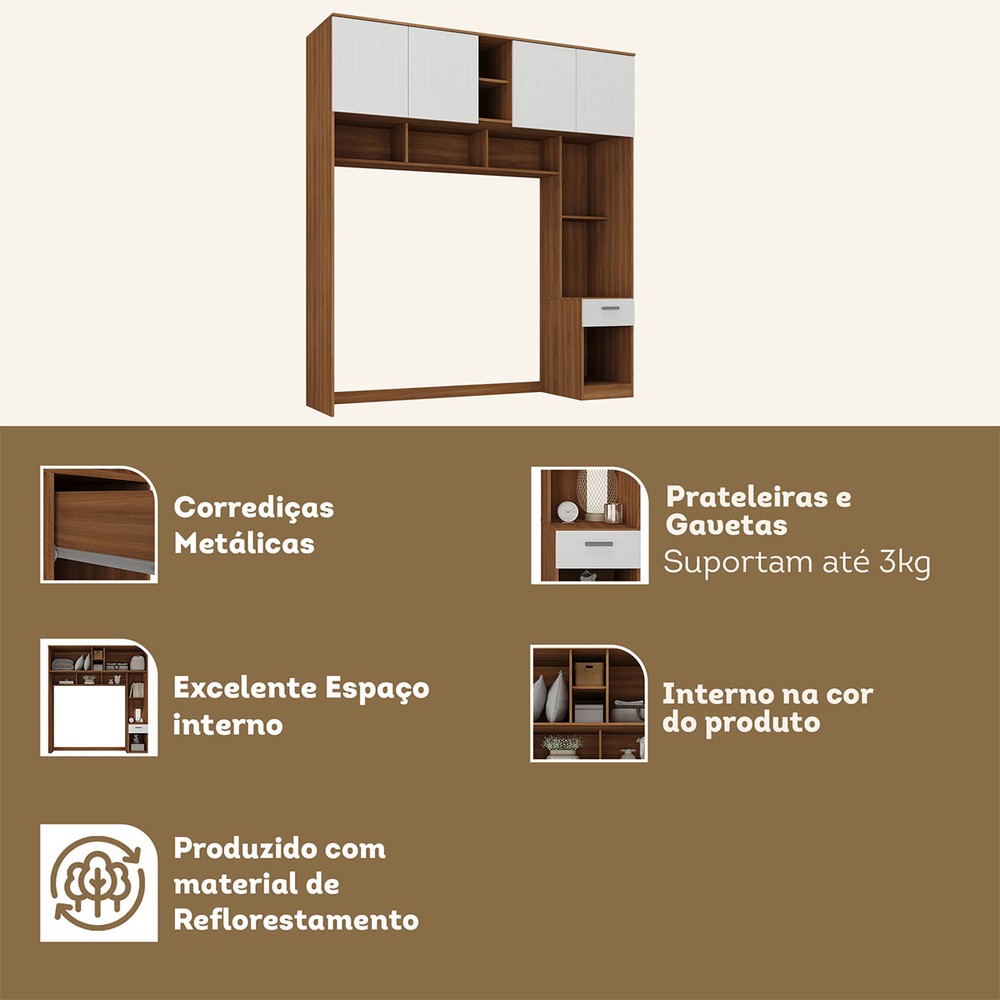 O(a) Guarda-Roupa Modulado Ponte Lugano 4 Portas 1 Gaveta Nogal/Branco - Hecol Móveis é produzido em MDP na escala de brilho Fosco, e possui um grau de dificuldade de montagem: Médio.