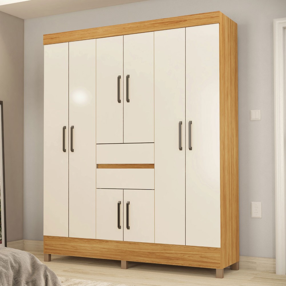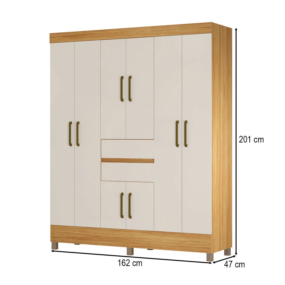 Guarda-Roupa Solteiro Munique 8 Portas 2 Gavetas Cinamomo/Off White - Demóbile