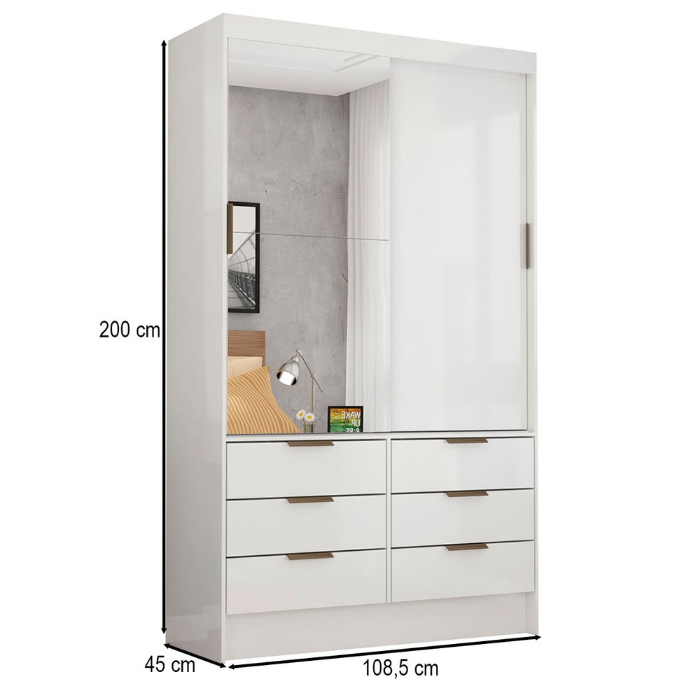 O(a) Guarda-Roupa Solteiro Napolli 2 Portas 6 Gavetas Branco - Pnr Móveis é produzido em MDP na escala de brilho Brilho, e possui um grau de dificuldade de montagem: Médio.