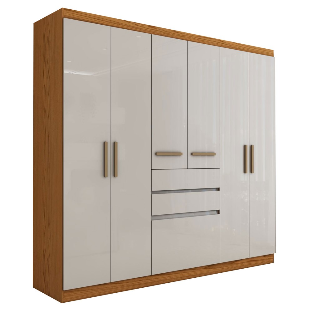 Guarda-Roupa Solteiro Naturale 6 Portas 3 Gavetas Freijó/Off White Laca - Panorama Móveis