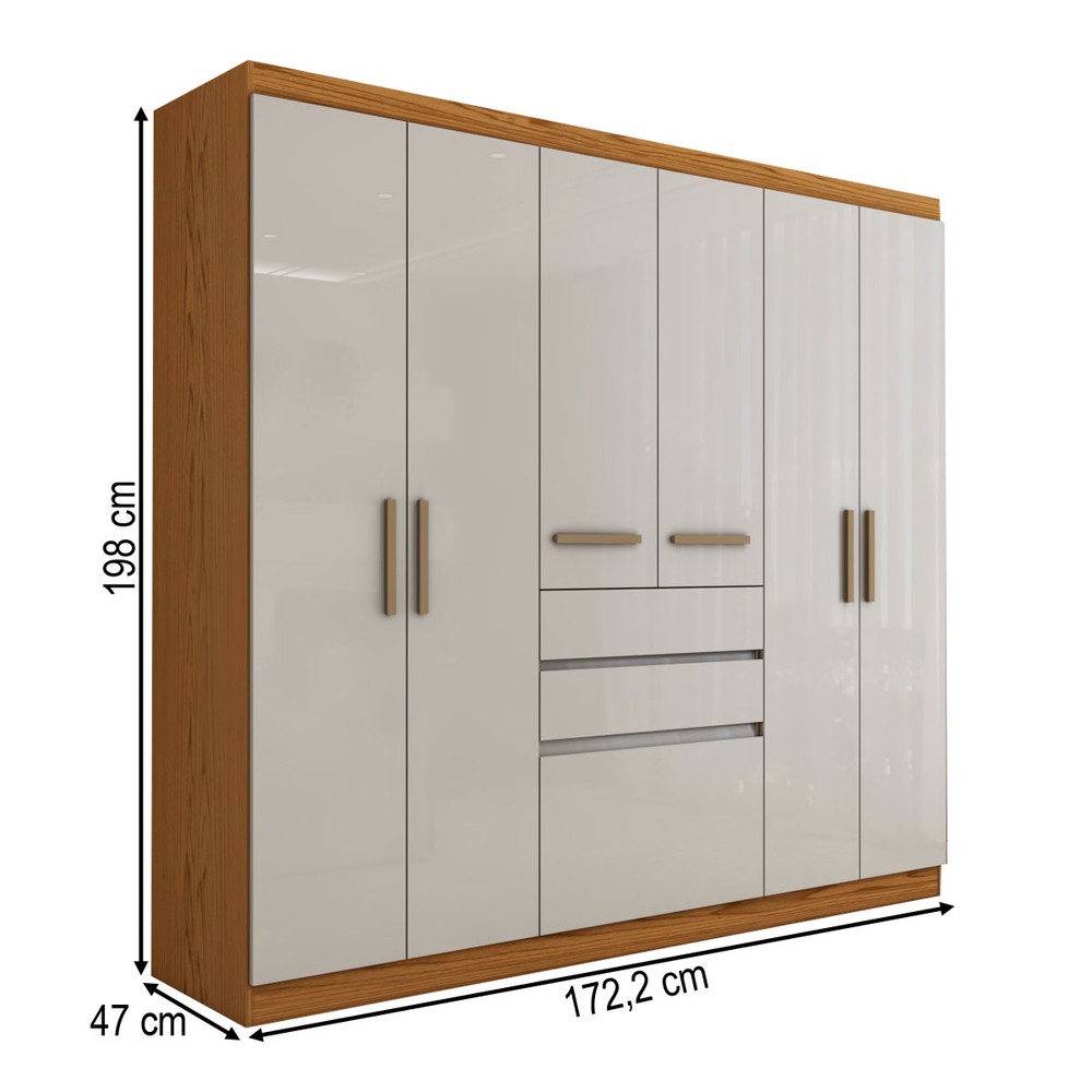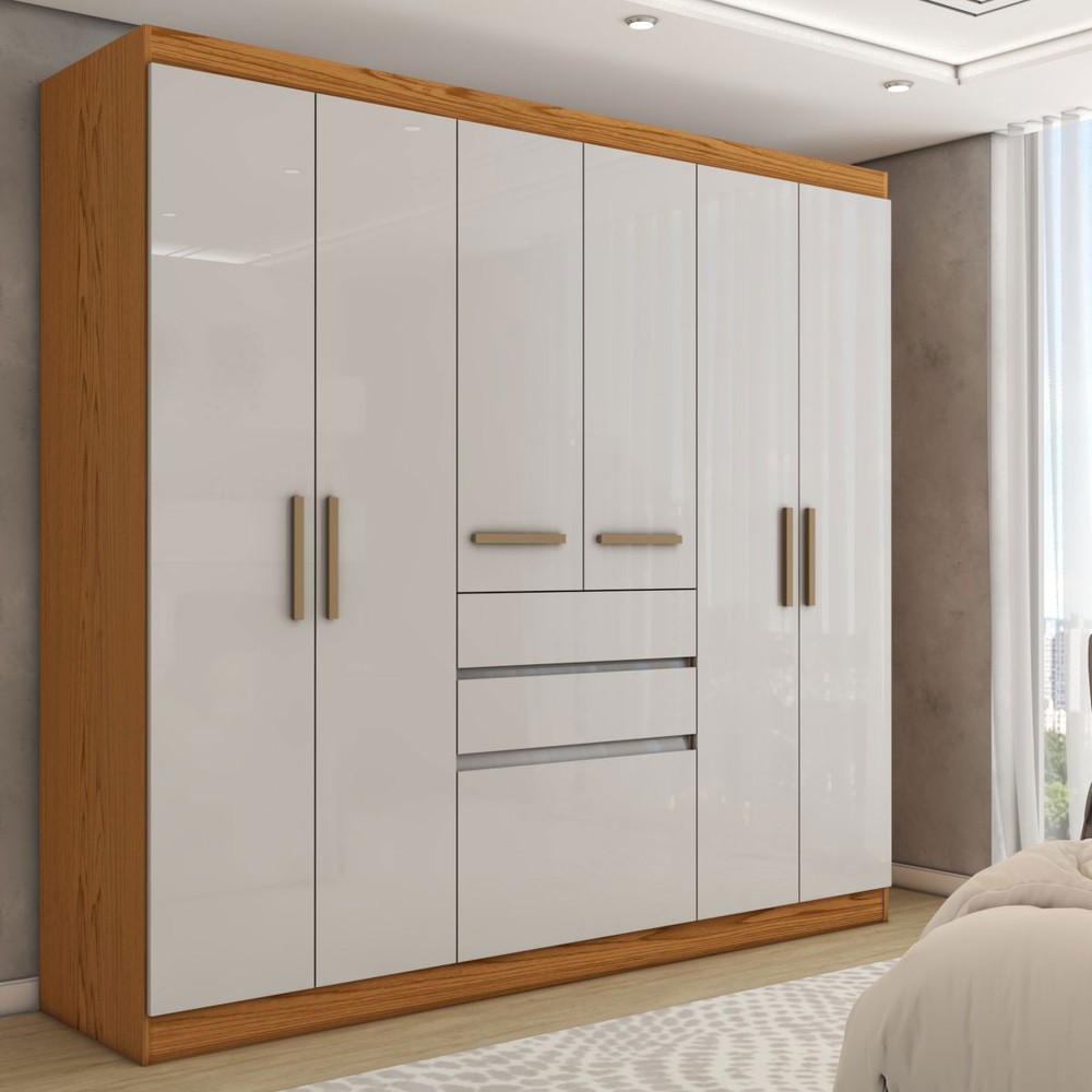 O(a) Guarda-Roupa Solteiro Naturale 6 Portas 3 Gavetas Freijó/Off White Laca - Panorama Móveis é produzido em MDP na escala de brilho Brilho e Fosco, e possui um grau de dificuldade de montagem: Médio.