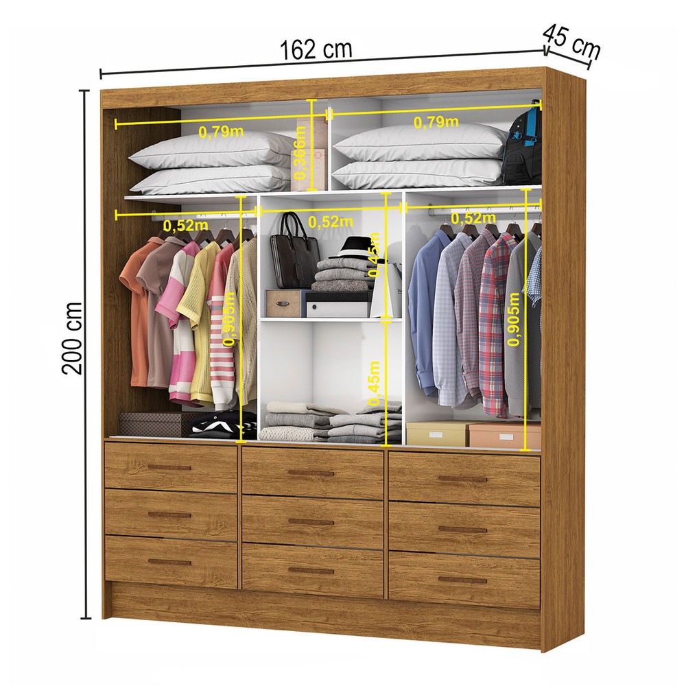 O(a) Guarda-Roupa Solteiro Sevilha 3 Portas 9 Gavetas com Espelho Cinamomo - Carioca Móveis é produzido em MDP na escala de brilho Fosco e Semi-Brilho, e possui um grau de dificuldade de montagem: Médio.