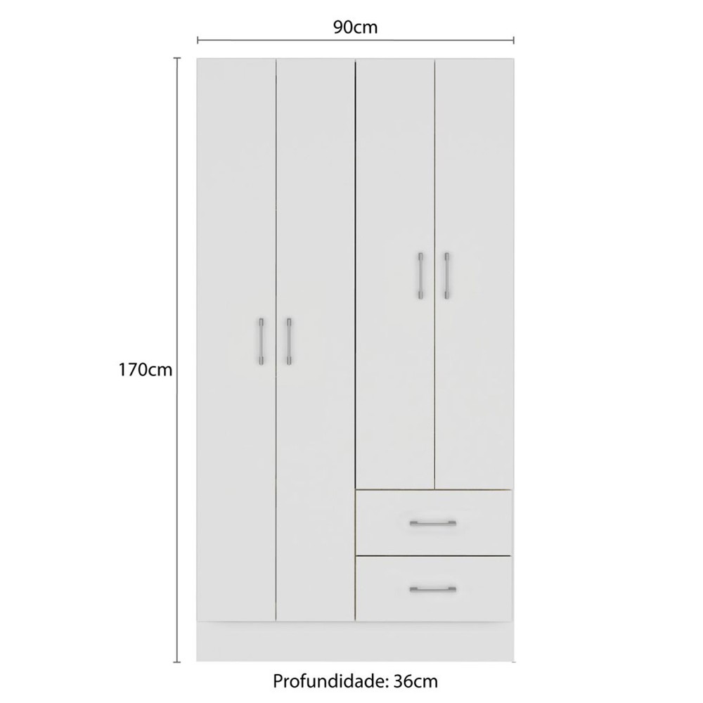 Guarda-Roupa Solteiro Panamá 4 Portas 2 Gavetas Branco - Fellicci
