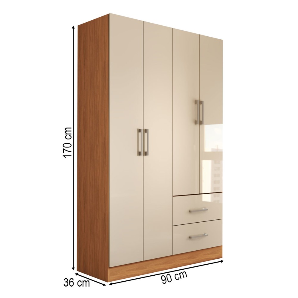 O(a) Guarda-Roupa Solteiro Paraná 4 Portas 2 Gavetas Cinamomo/Off White - Panorama Móveis é produzido em MDP na escala de brilho Brilho e Semi-Brilho, e possui um grau de dificuldade de montagem: Médio.