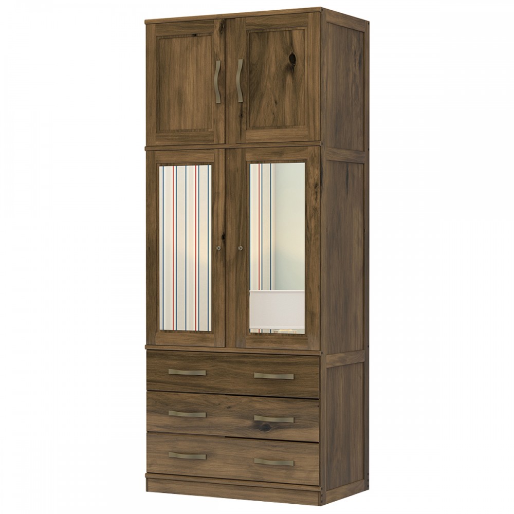 O(a) Guarda-Roupa Solteiro Paris 4 Portas 3 Gavetas com Espelho Madeira Maciça Castanho 363 - Lanes é produzido em Pinus na escala de brilho Alto Brilho, e possui um grau de dificuldade de montagem: Médio.